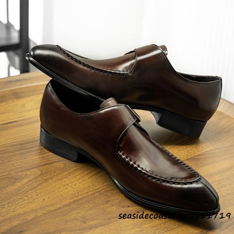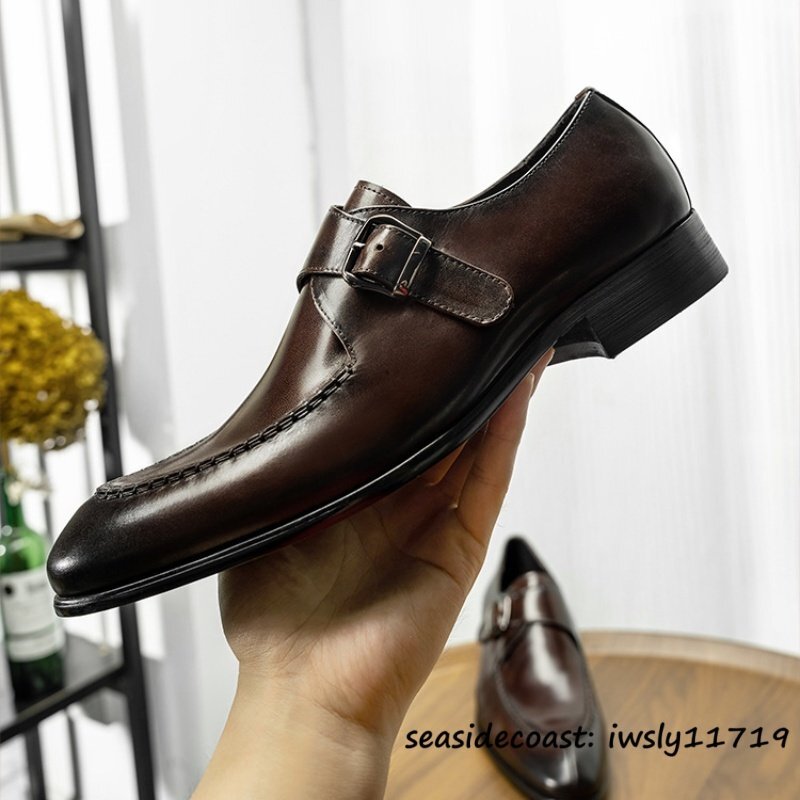 超希少★本革 レザーシューズ 職人手作り ビジネスシューズ メンズ モンクストラップ 革靴 最高級 牛革 紳士靴 フォーマル 珈琲色 25.5cm