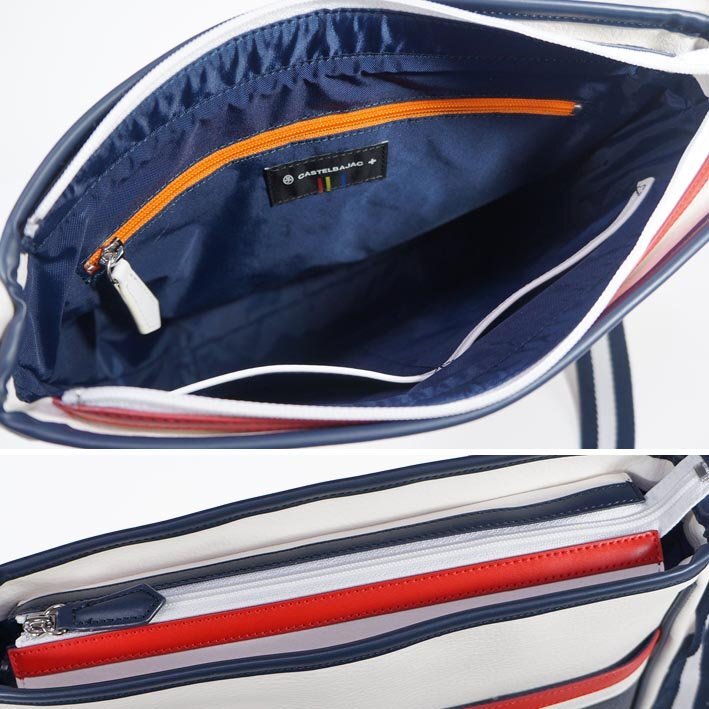 2点以上お買い上げは送料1点分に同梱致しますので送料がお得!! ■ブランド CASTELBAJAC ■状態 新品・未使用 ■サイズ 約29cm×約32cm×約9cm (必ず実寸をご参考下さい。誤差はご容赦下さい) ■素材 ポリウレタン/ポリ塩化ビニル ■カラー ホワイト×ネイビー ■商品説明 カステルバジャック CASTELBAJAC のショルダーバッグ(大)です。デザイン性と実用性を併せ持つポケットと、トリコロールカラーの大胆な組み合わせがポイントのアイテム。A4サイズを収納できる大容量のショルダーバッグです。 本体素材は、ナチュラルシボの型押しを施したソフト合皮を使用。大胆なトリコロールカラーの使い方とカラーブロックはこのブランドでしか味わえない特別なデザインです。 ロゴはカラフル且つ大きく厚みを持たせる事によりカジュアルテイストの中にグレードの高さを感じられます。メインルームにはA4サイズを収納できる大容量アイテム。普段使いはもちろん、通勤や通学でも活用できるサイズ感です。大胆なトリコロールの中にスマートさを兼ね備えたデザインで、男女問わず活用できるアイテムです。重さは約640gと軽量です。 色はホワイト×ネイビーです。 収納は 外側:フロントマグホックポケット×1、バックホック付きポケット(内側に小型ポケット×2) 内側:ファスナーポケット×1、オープンポケット×2 です。 ■発送方法/送料 ゆうパックで一律700円 (運送会社の指定は出来ませんのでご了承下さい) ■お支払いについて 落札金額+消費税+送料 ※当店はストアの為消費税を頂戴しています。ご了承下さい。 ■その他 ・他にも人気ブランド品を出品しています。こちらをご覧ください。 ![]() ・終了間際のご質問にはお答えできない場合がございます。 ・複数落札していただければ同梱しますので送料がお得です。 ・お使いのモニタ設定等によって若干色目が異なることがありますのでご了承下さい。 ・返品(サイズが合わない・イメージと違うといった理由)、クレーム、キャンセルはお受けできませんので、責任のあるご入札をお願い致します。 |