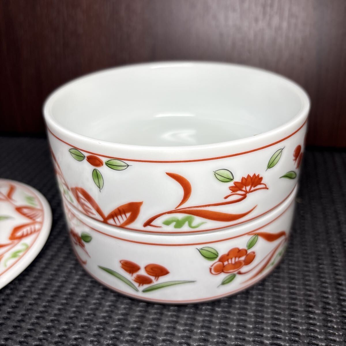 ★大阪/店舗受け取り可★たち吉 二段重ね 二段重 小物入れ 蓋付き 陶器 赤絵 花文 橘吉印 和食器 小鉢 菓子入れ 小物入れ★