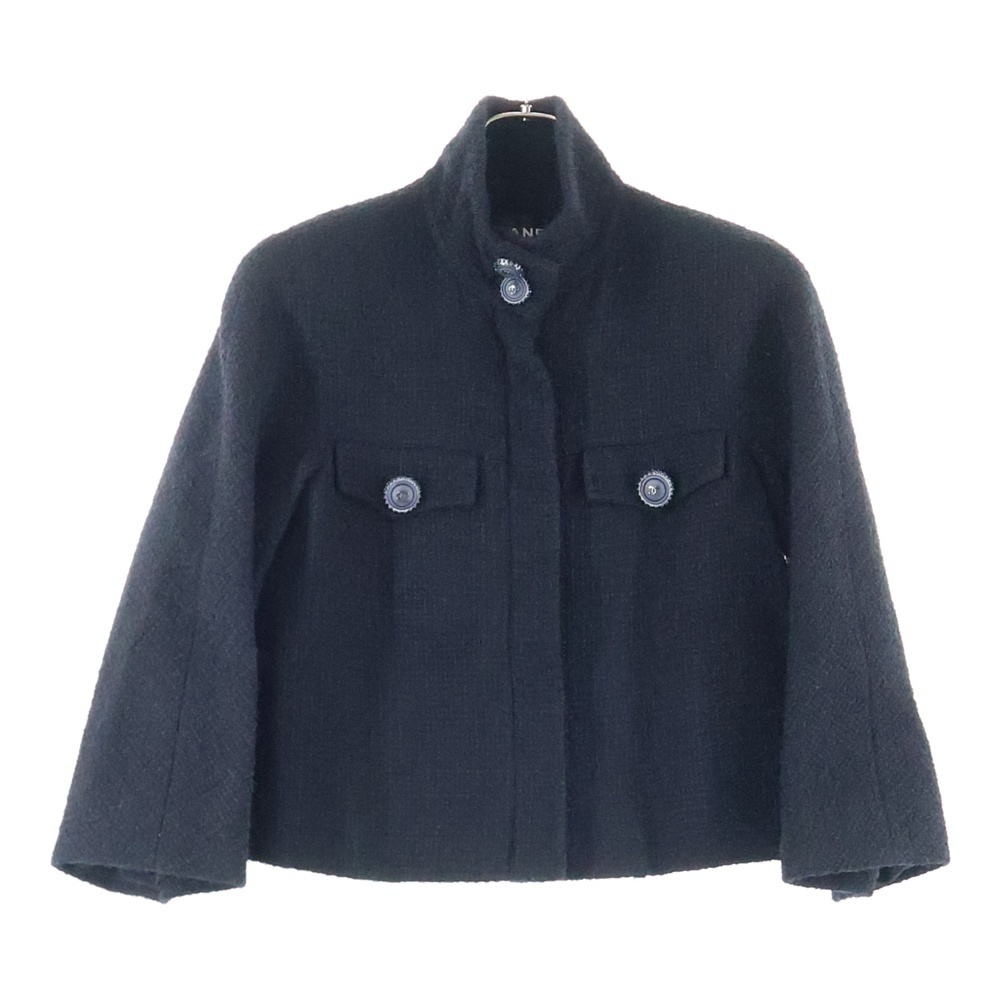 シャネル ココマーク グリポワボタン スタンドカラー ジップアップ 比翼 クロップド ショートジャケット レディース P62026V19676