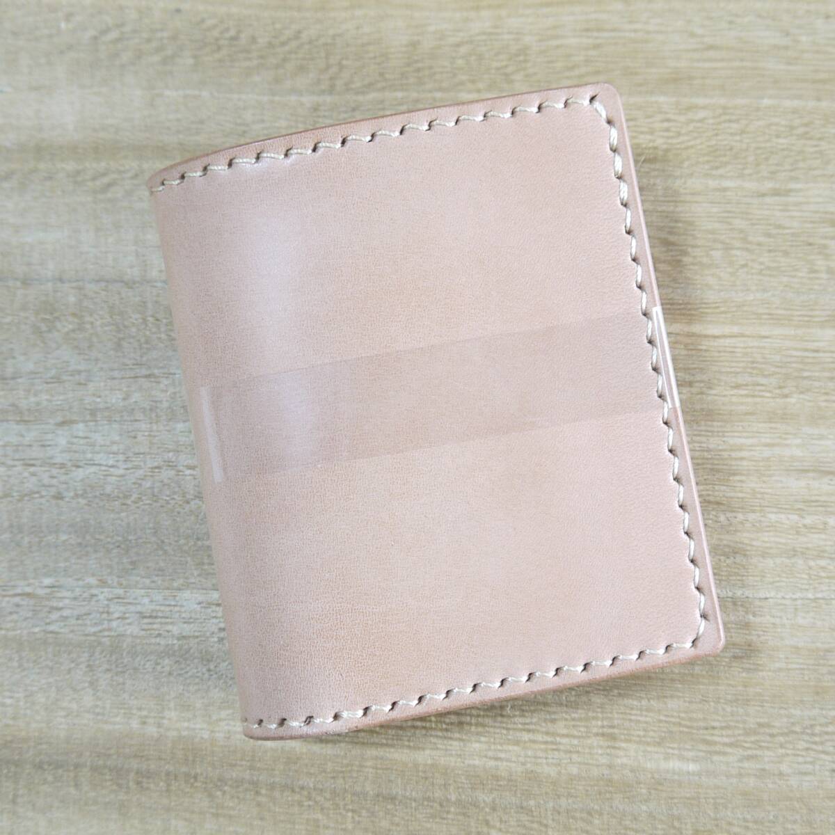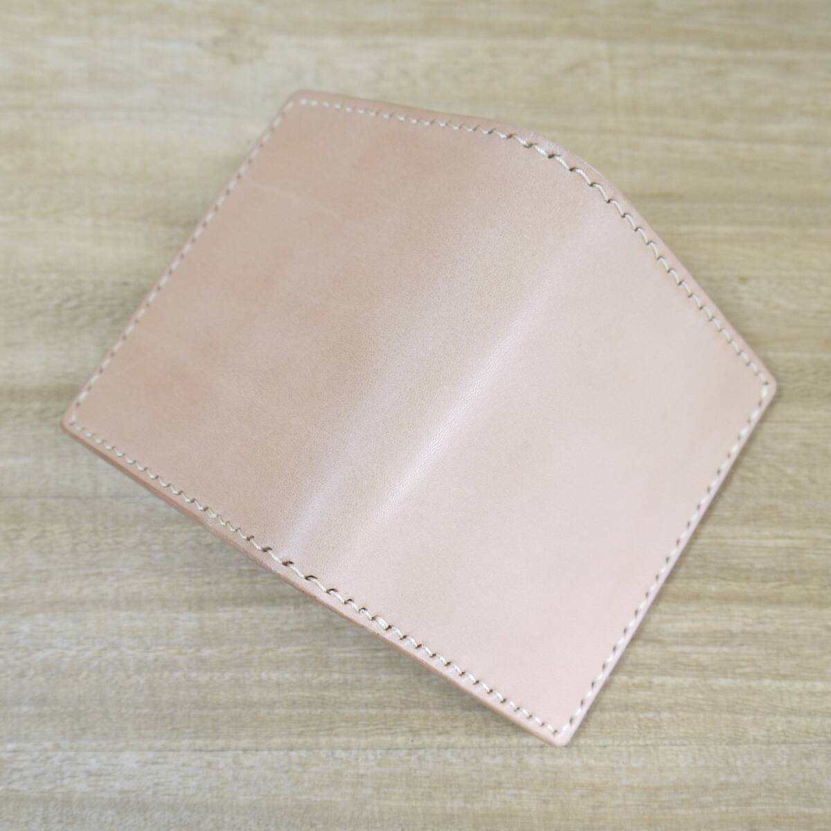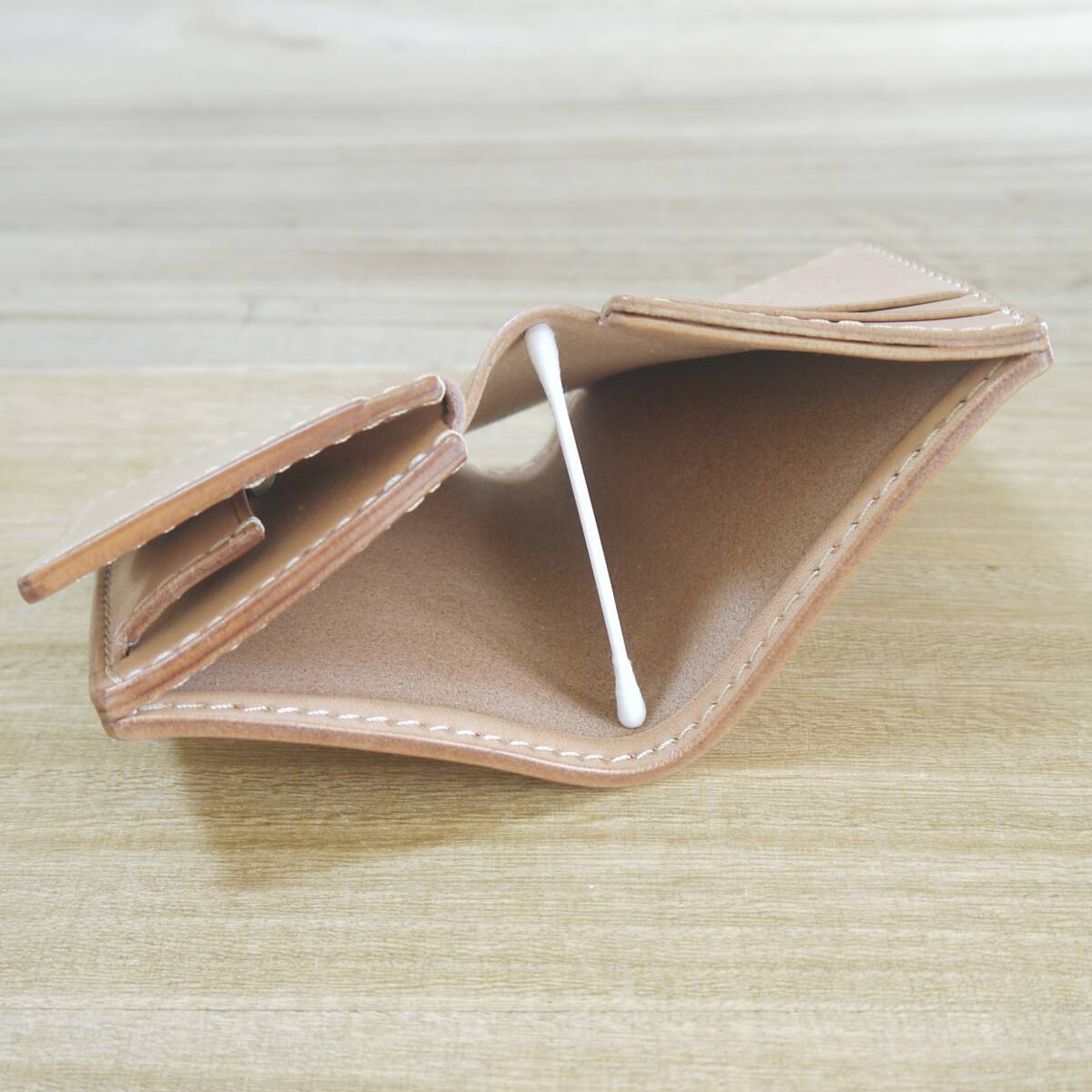 エイジングが楽しめる生成りのヌメ革を使用しています。経年とともにキャメル色に変化し、革本来の風合いが増していきます。