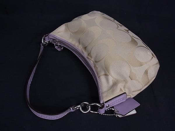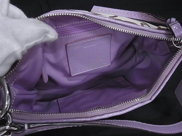 1円■美品■COACH コーチ 28206E シグネチャー キャンバス×パテントレザー 2WAY ハンドバッグ ショルダー ベージュ系×パープル系 BQ1806