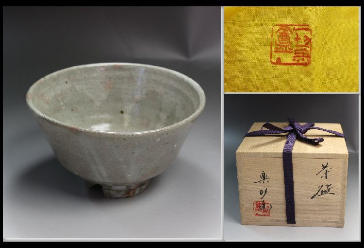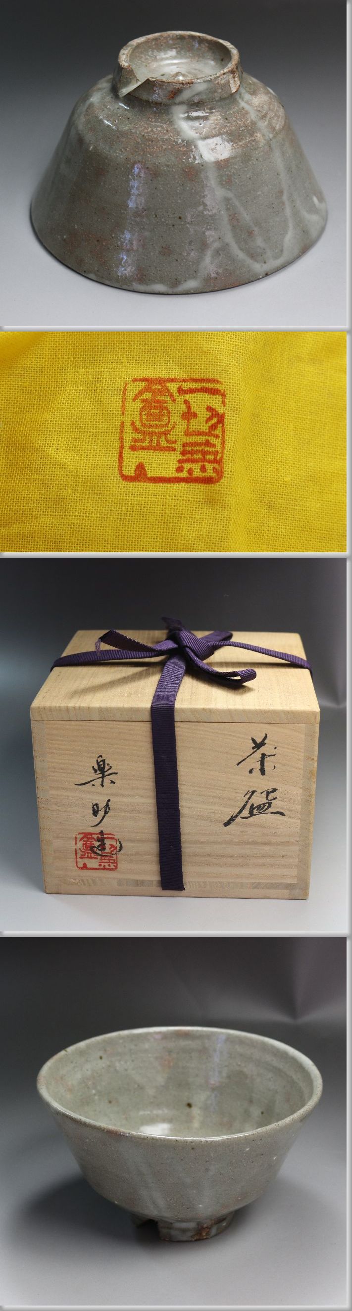 茶道具 萬古焼焼  楽助造 茶碗 四方桟共箱 共布を お預かりしまして出品いたしました。