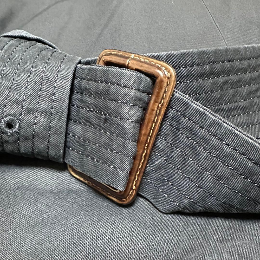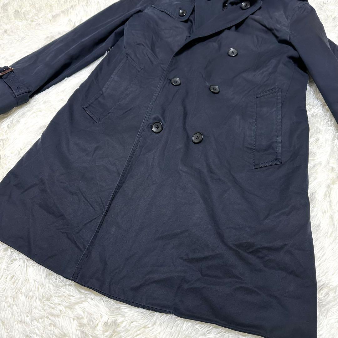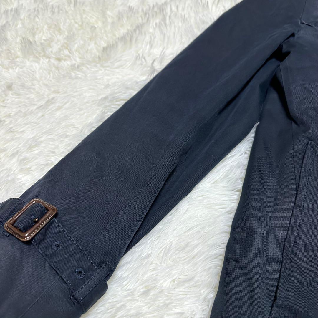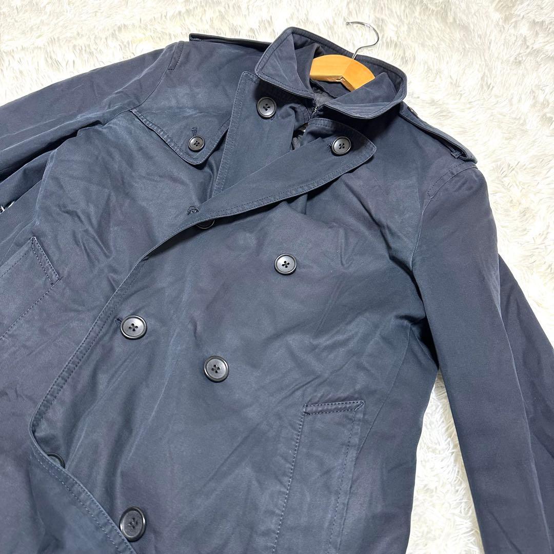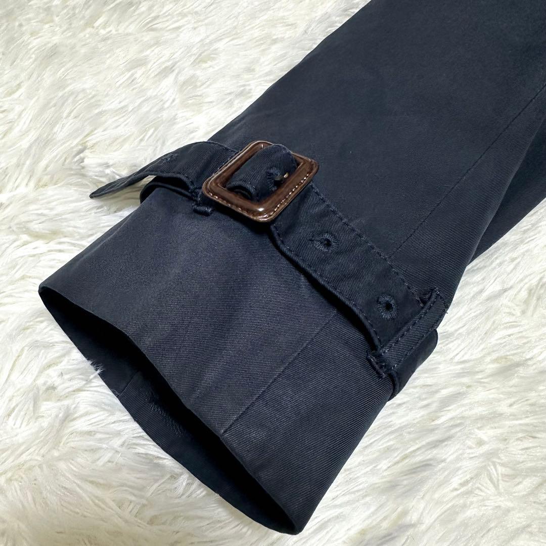 洗練されたバーニーズニューヨークのトレンチコートです。ダブルブレストとベルト付きデザインがクラシックでエレガントな雰囲気を演出します。