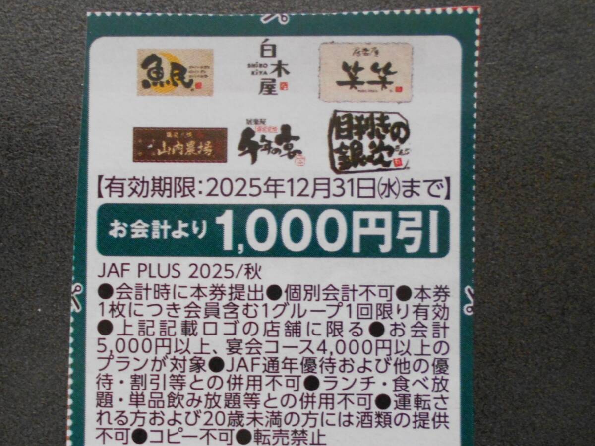 魚民 白木屋 笑笑 山内農場 千年の宴 目利きの銀次 割引券1枚 JAFクーポン