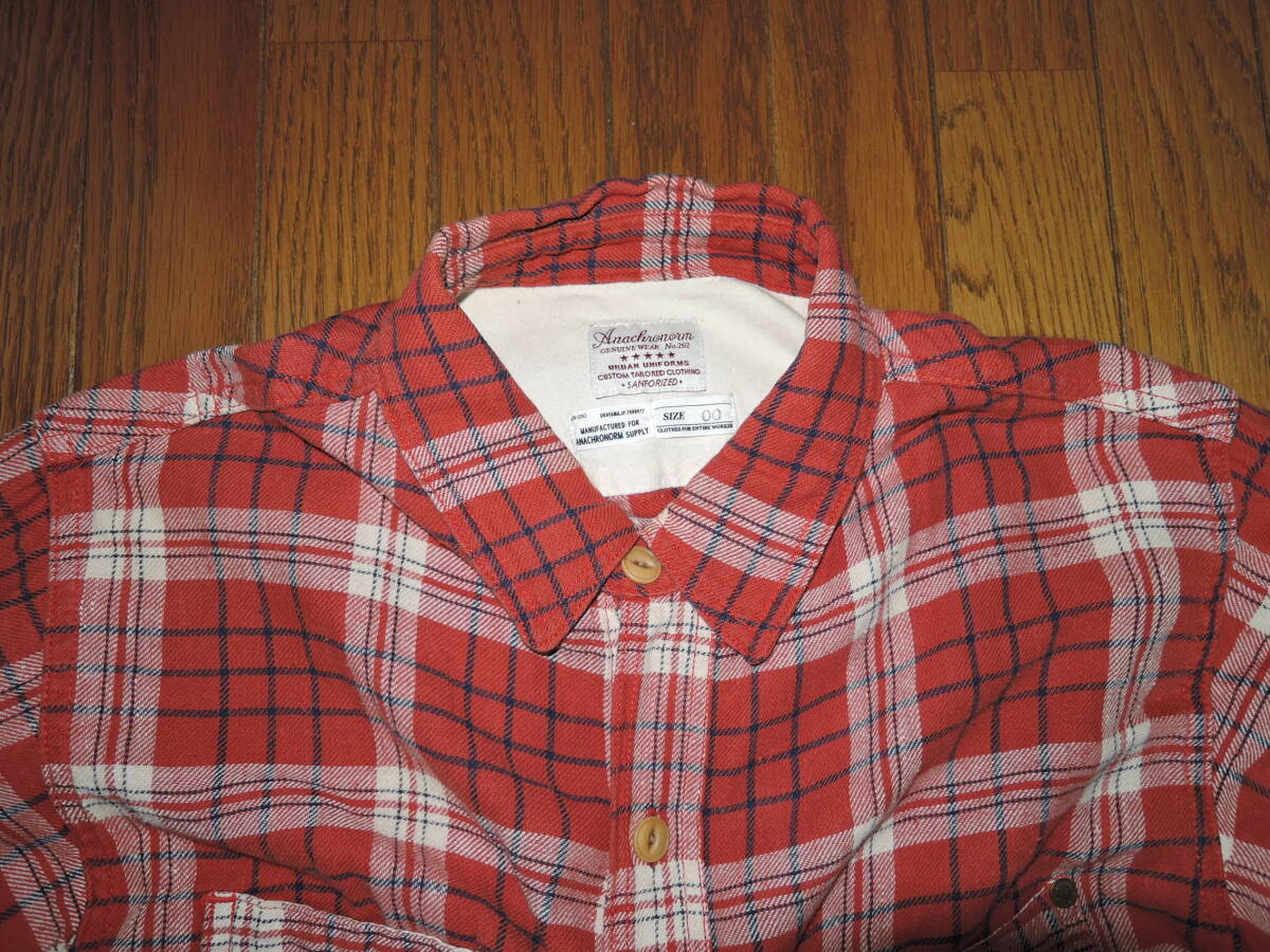 Anachronorm アナクロノーム チェックシャツ 00 赤系 加工 ネルシャツ 長袖シャツ /