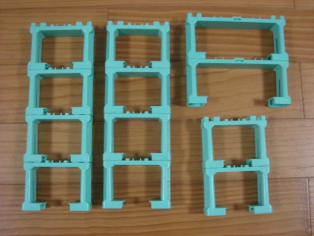 プラレール ブロック橋脚 10個・複線ブロック橋脚 2個 薄緑 です。