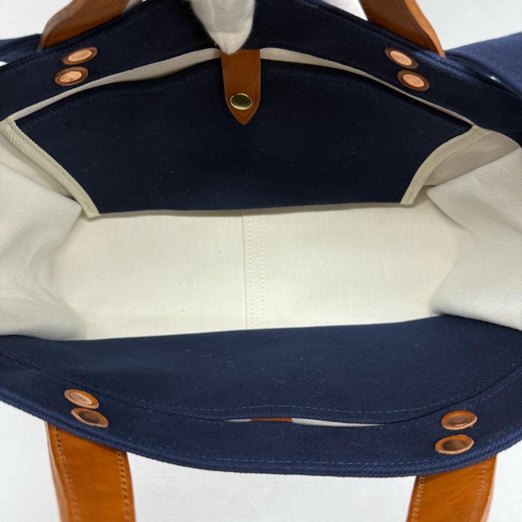 263-BY26) 未使用 BEERBELLY GREEDY TOTE S キャンバス ネイビー レザー ビアベリー 欲張り トートバッグ 2way ショルダーバッグ