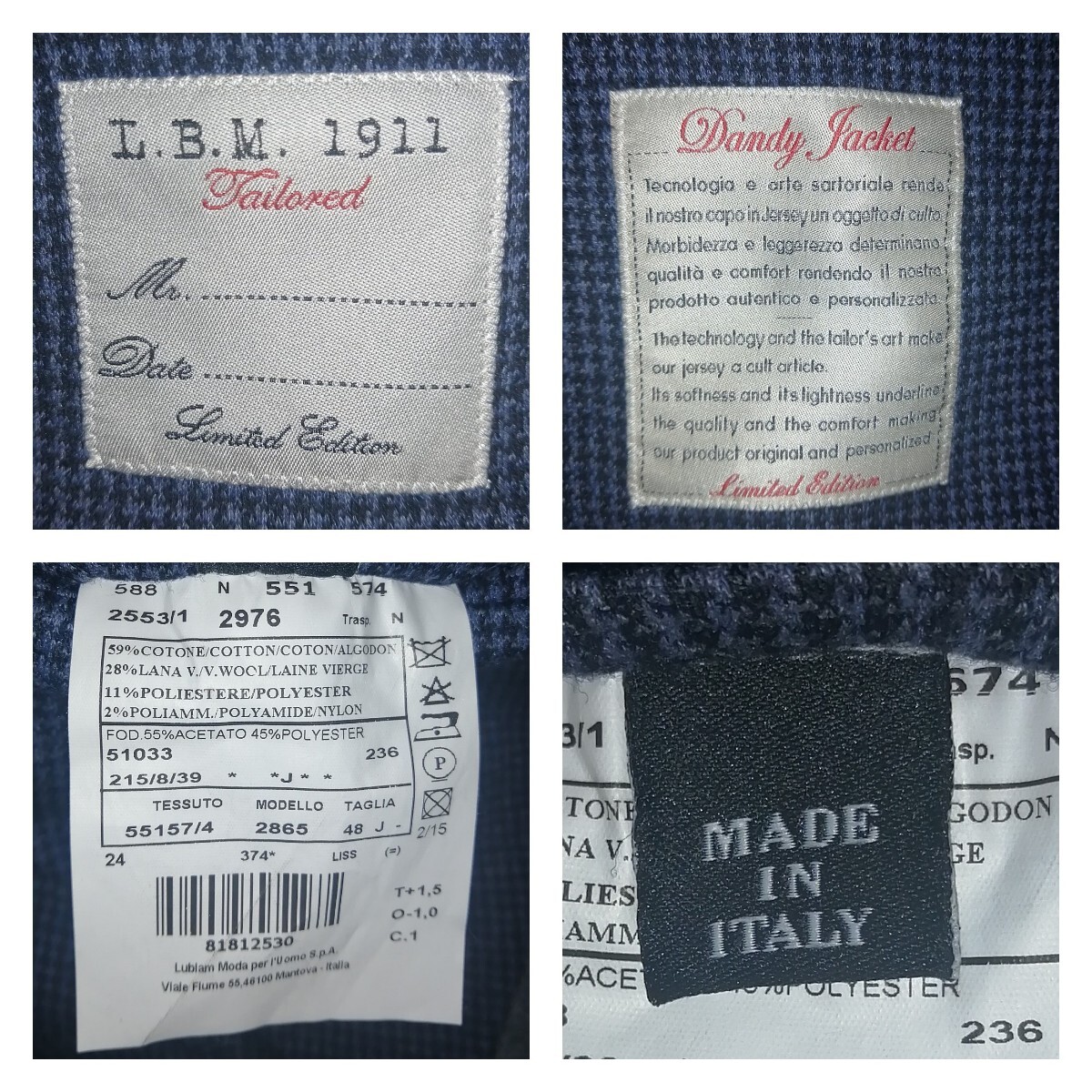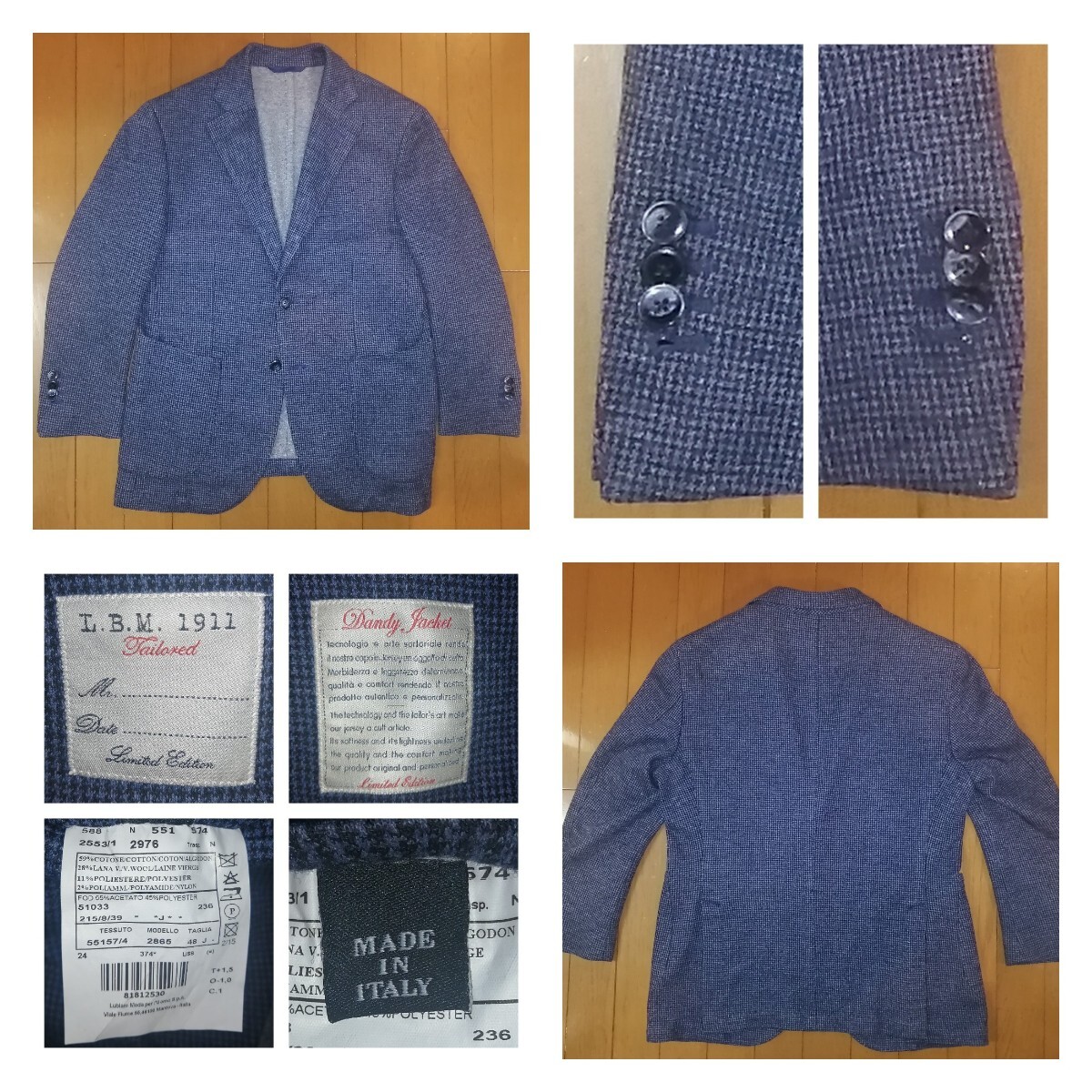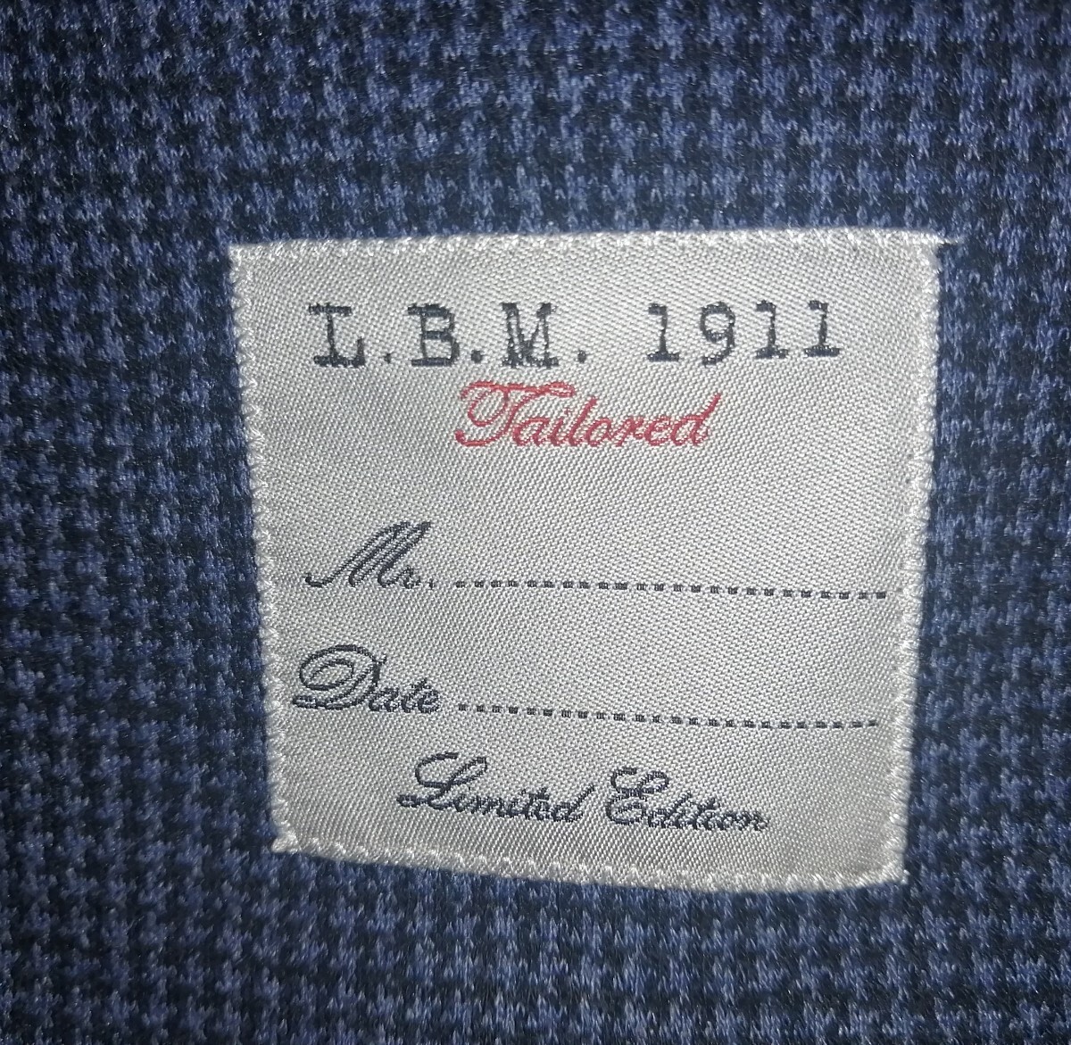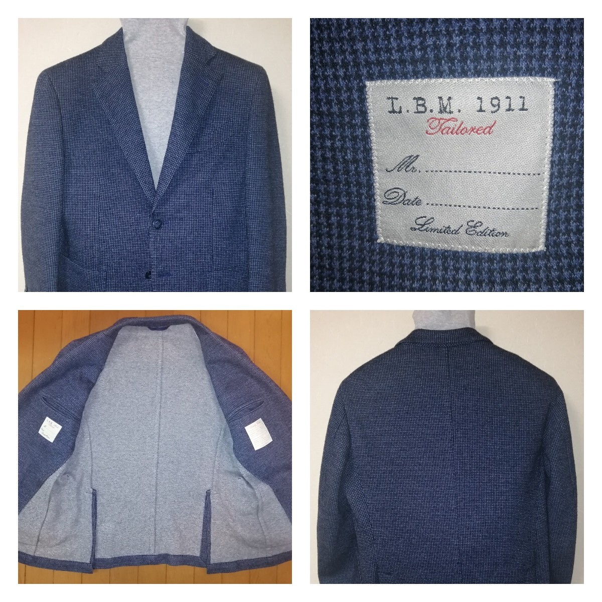 エルビーエム1911(LBM1911)リミッテッドエディションのブルー&ブラック千鳥格子のストレッチ素材ソフトテーラリングジャケット詳細