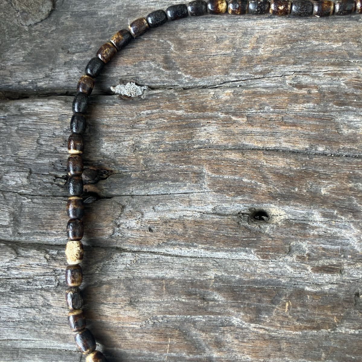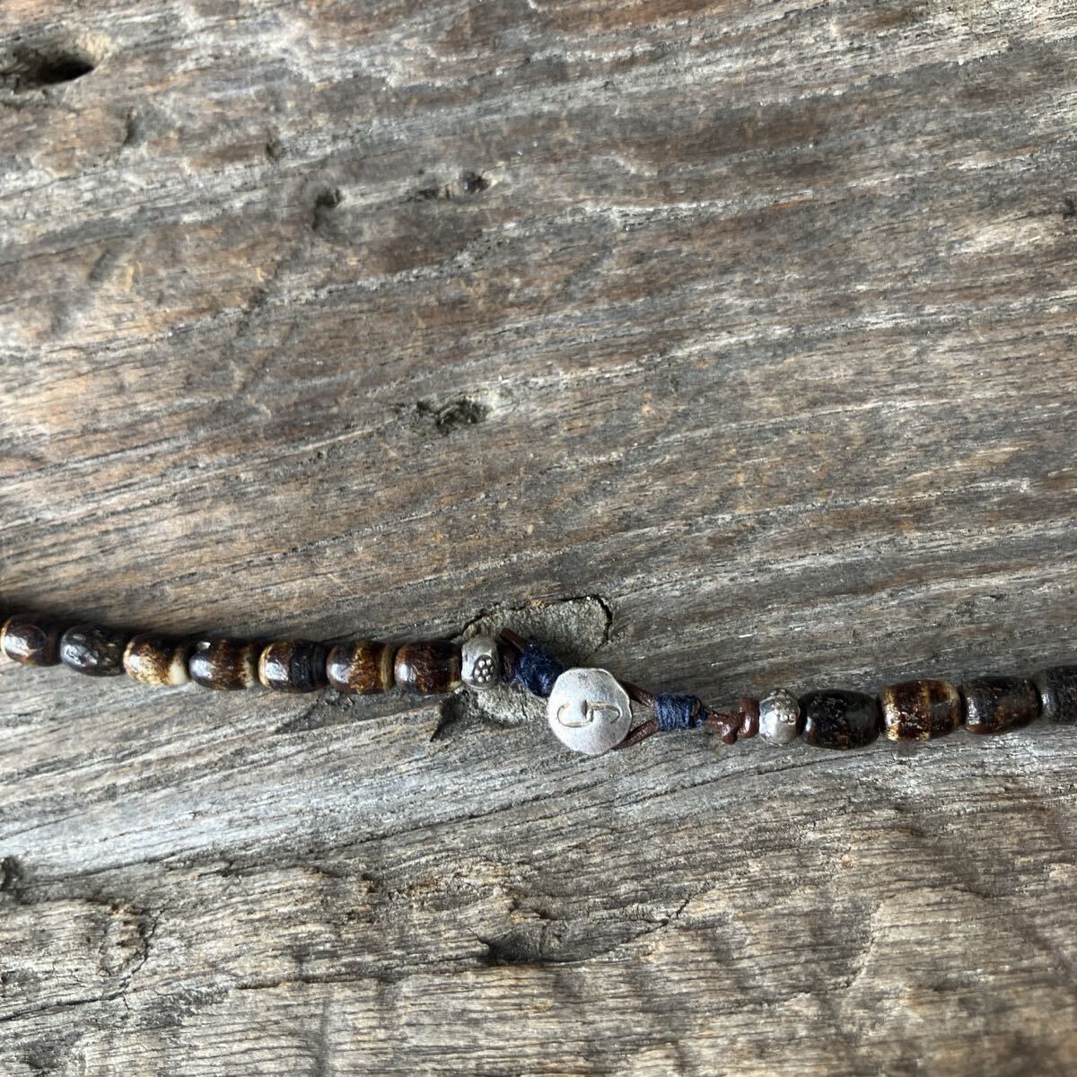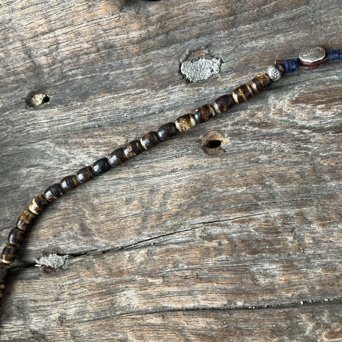 幅5mmのタンダク状に切り込んだ牛革を編み込んだ紐にシルバーのボールを通したネックレスです。便宜上メンズと記載して居ますがレディースとしても着用頂けると思います。