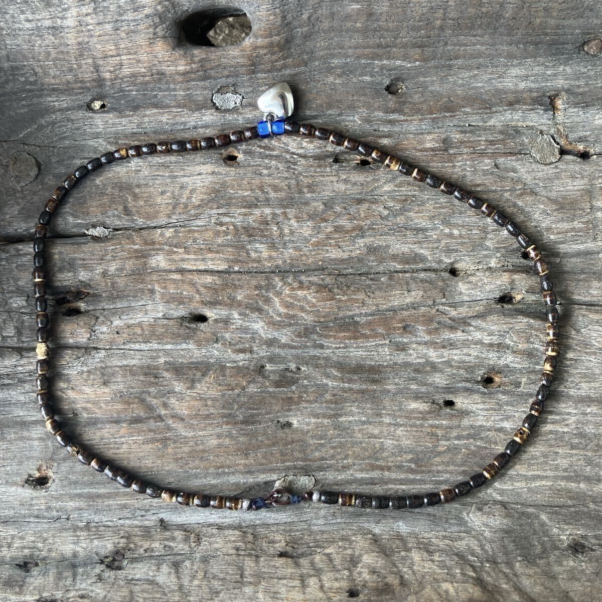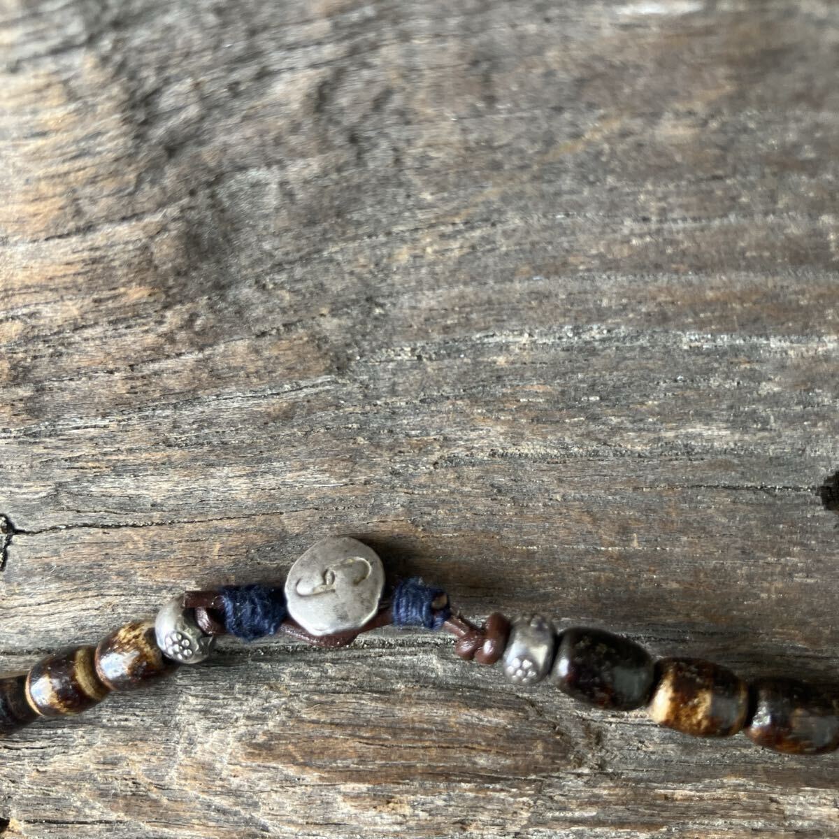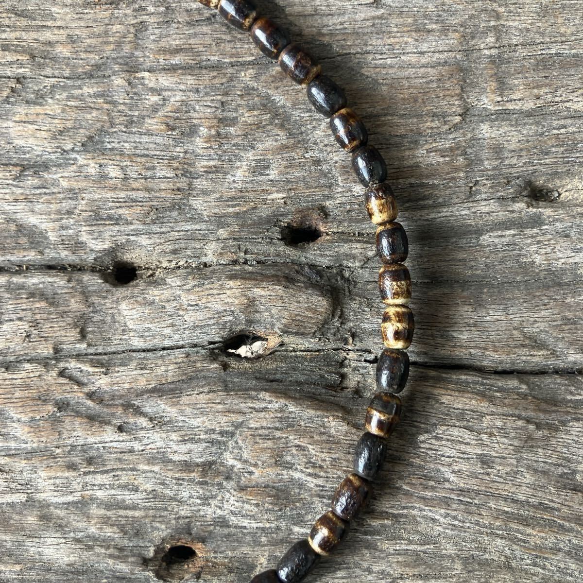 幅5mmのタンダク状に切り込んだ牛革を編み込んだ紐にシルバーのボールを通したネックレスです。便宜上メンズと記載して居ますがレディースとしても着用頂けると思います。