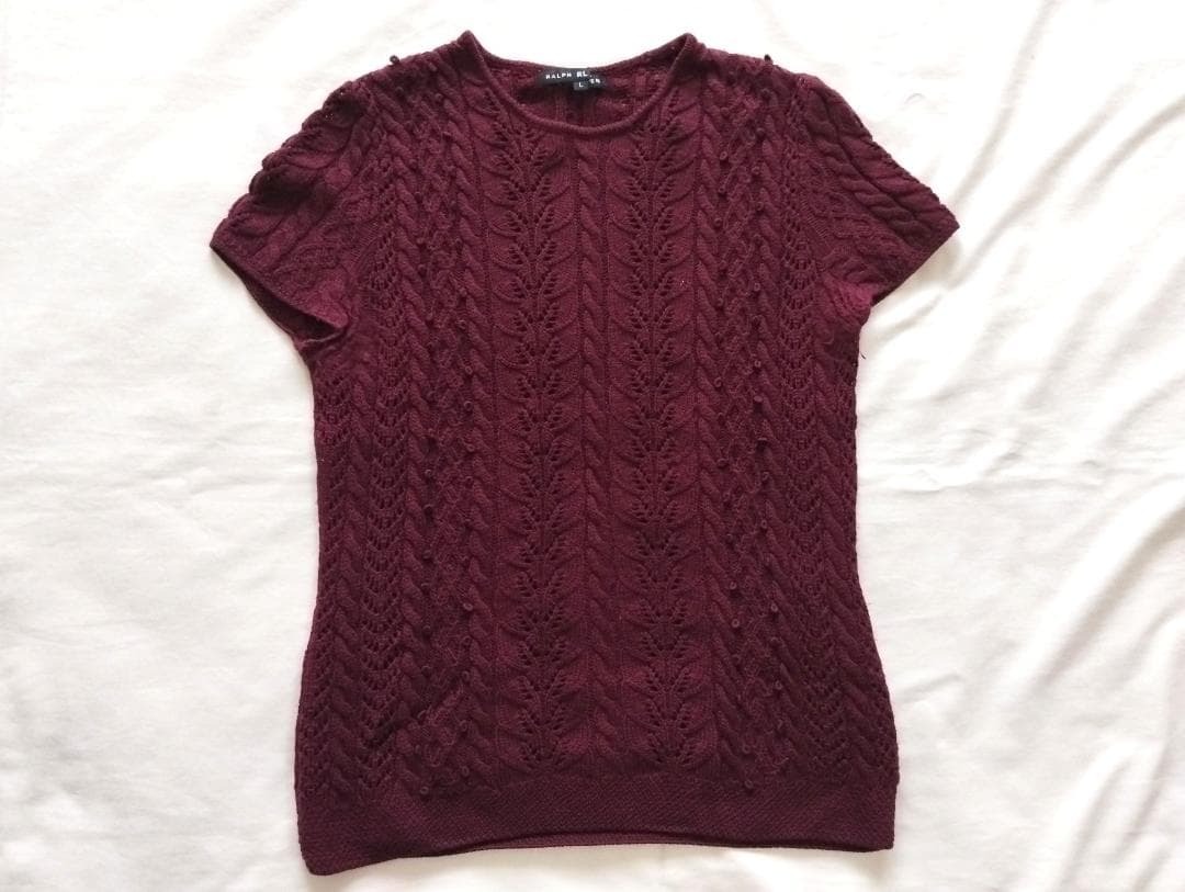 Ralph Lauren Black Lagbelの半袖ケーブルニットセーターです。