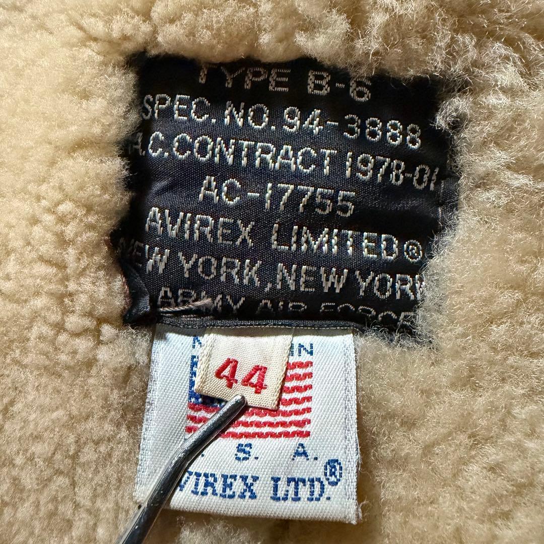 AVIREX フライトジャケット B-6 ムートン 羊革 アヴィレックス 米国製 USA製 44
