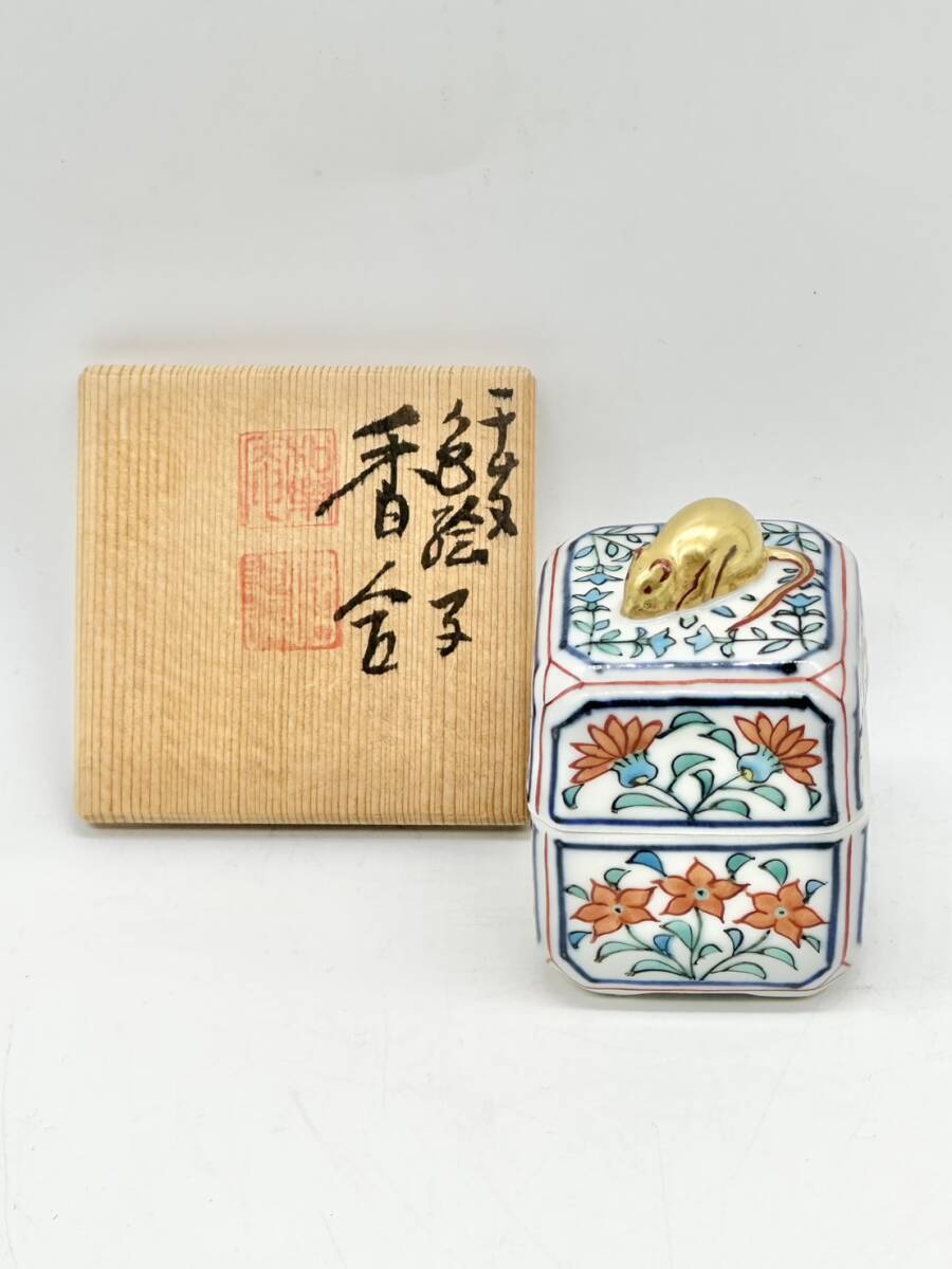 1000円スタート 香合 色絵子香合 ネズミ 鼠 古美術 骨董 陶器 コレクション