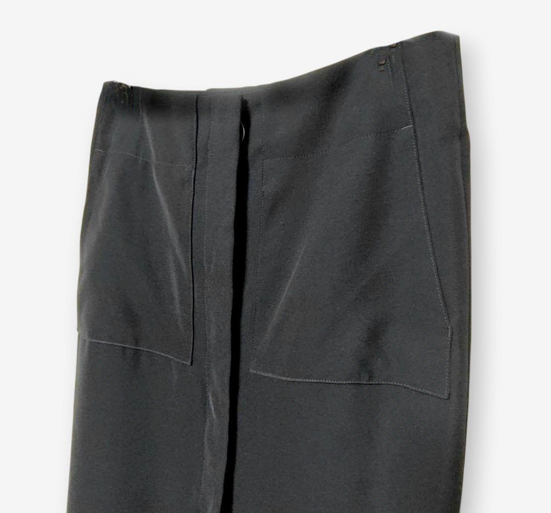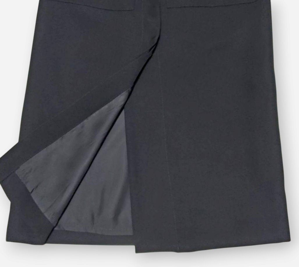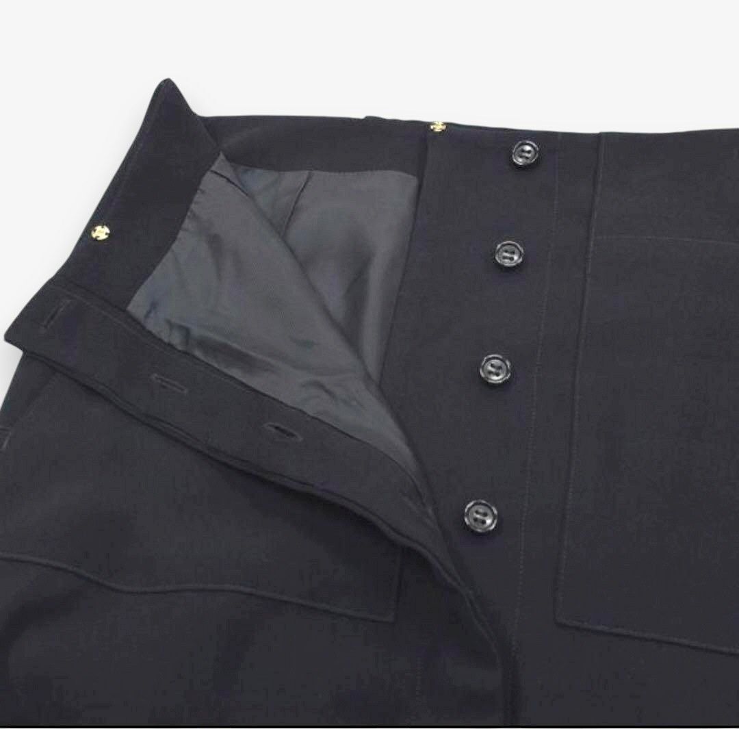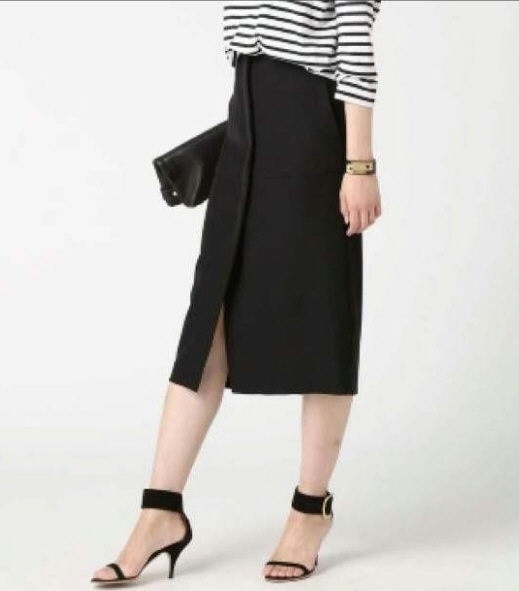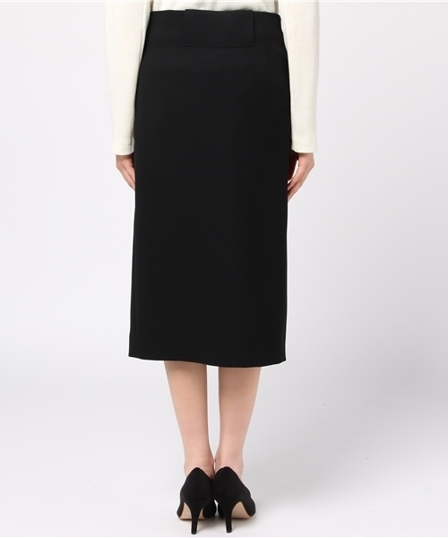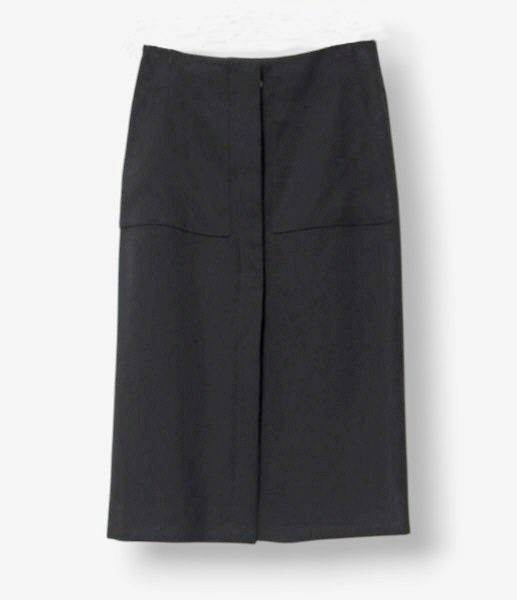 フロントのポケットと比翼仕立ての釦がポイントのタイトスカート。