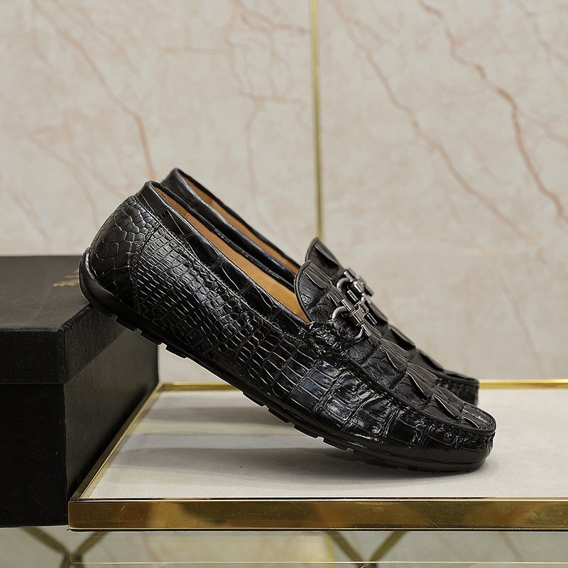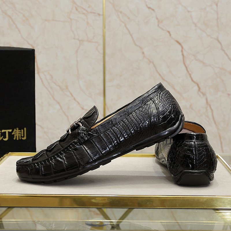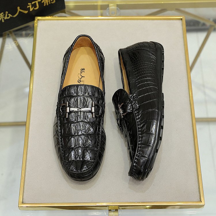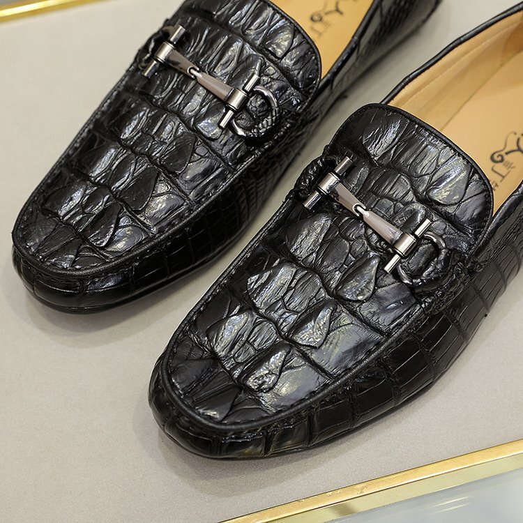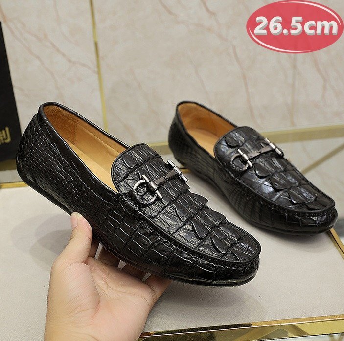 クロコダイルレザー ビジネスシューズ 最高級 ワニ革 クロコダイル 靴 メンズシューズ 革靴 ブラック 26.5cm 【n787】