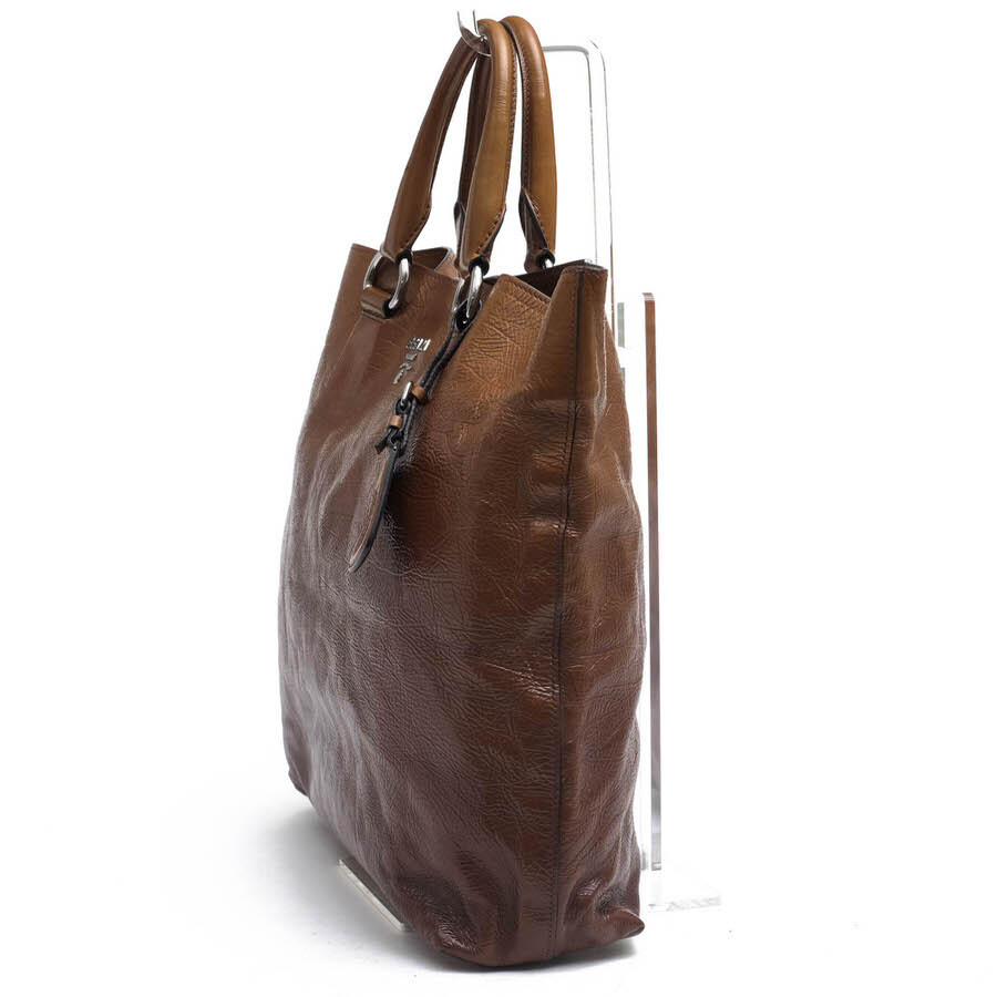 | ◆ブランド名 PRADA ◆サイズ詳細 横幅 約35cm、縦幅 約35cm、マチ 約11cm ◆仕様 ポケット×1 ファスナーポケット×1 ◆特徴 グラデーション ユニセックス 男女兼用 ◆型番 BN1713 VERNICE SFUMATA ◆生産国 イタリア ◆素材 上質な革 パテントレザー ◆素材詳細 牛革 ◆色 ブラウン 茶 ◆商品状態 中古品-可 ◆状態詳細 底部分赤いペン跡あり(画像6参照)持ち手コバに剥げ箇所あり(画像7参照) |