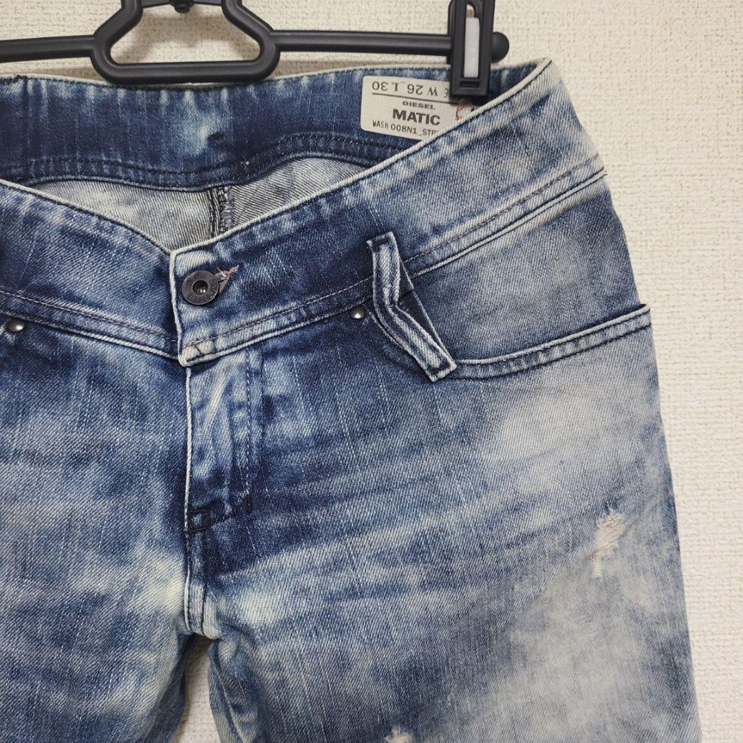 サイズはウエスト26インチで、コットン99%、ポリウレタン1%のストレッチ素材を採用。