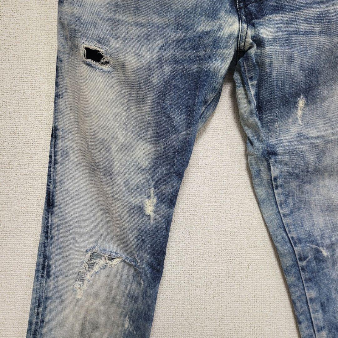 ウォッシュ加工とダメージディテールが特徴で、ヴィンテージ感漂うオシャレなデザインが魅力。