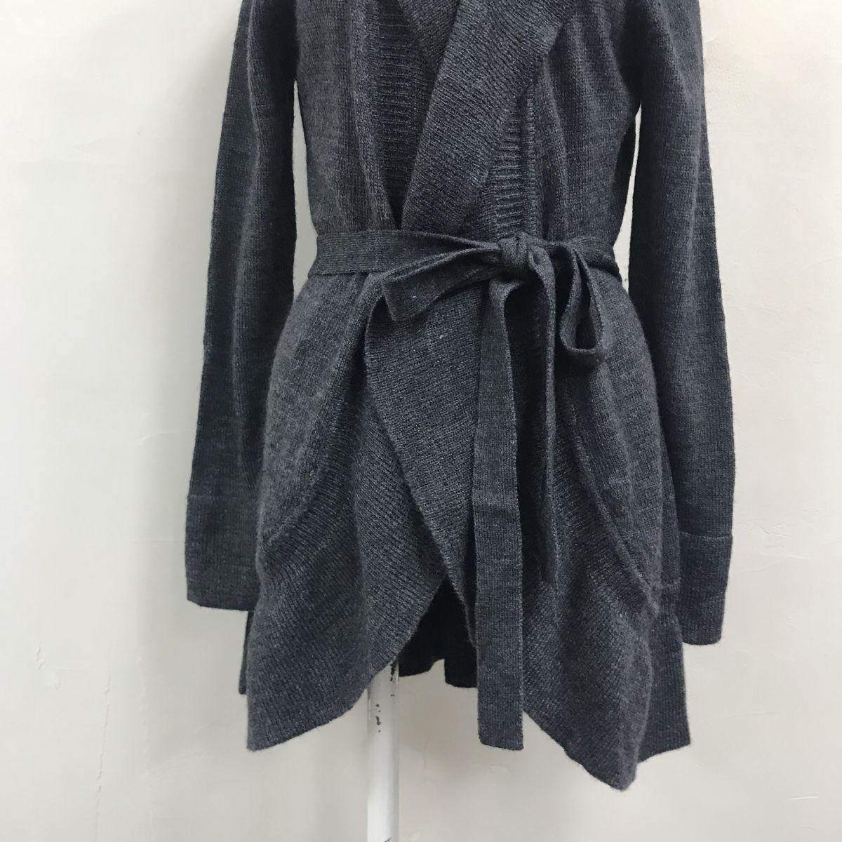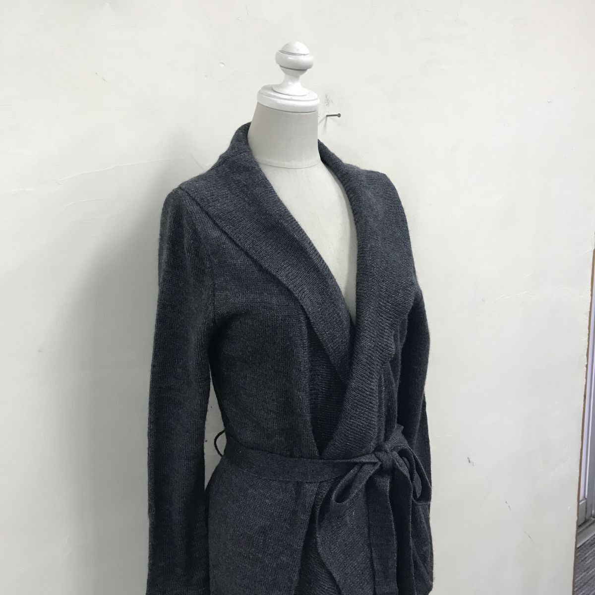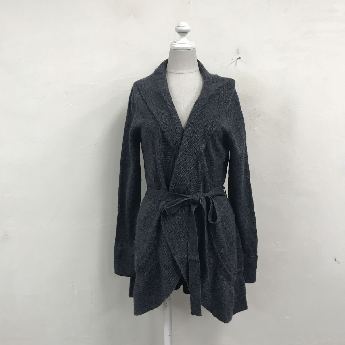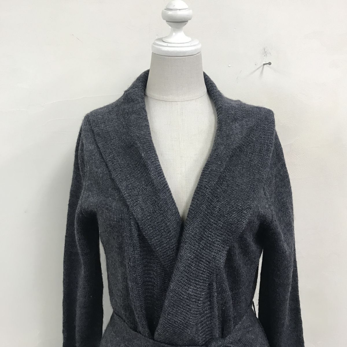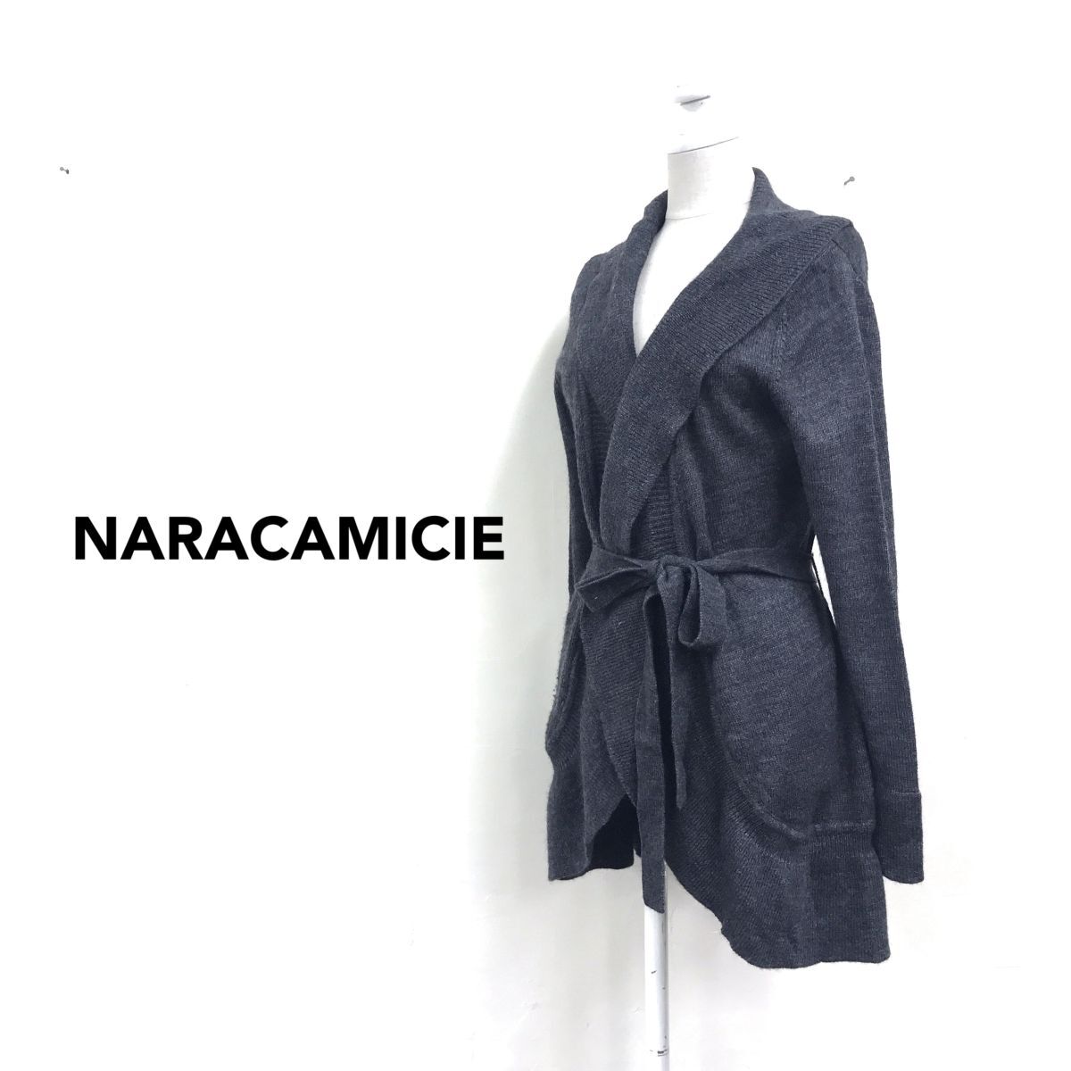 2O3262-G◆ NARACAMICIE ナラカミーチェ フリルショールカラーニットガウン カーディガン ベルト ◆ size1 チャコール アルパカ アクリル