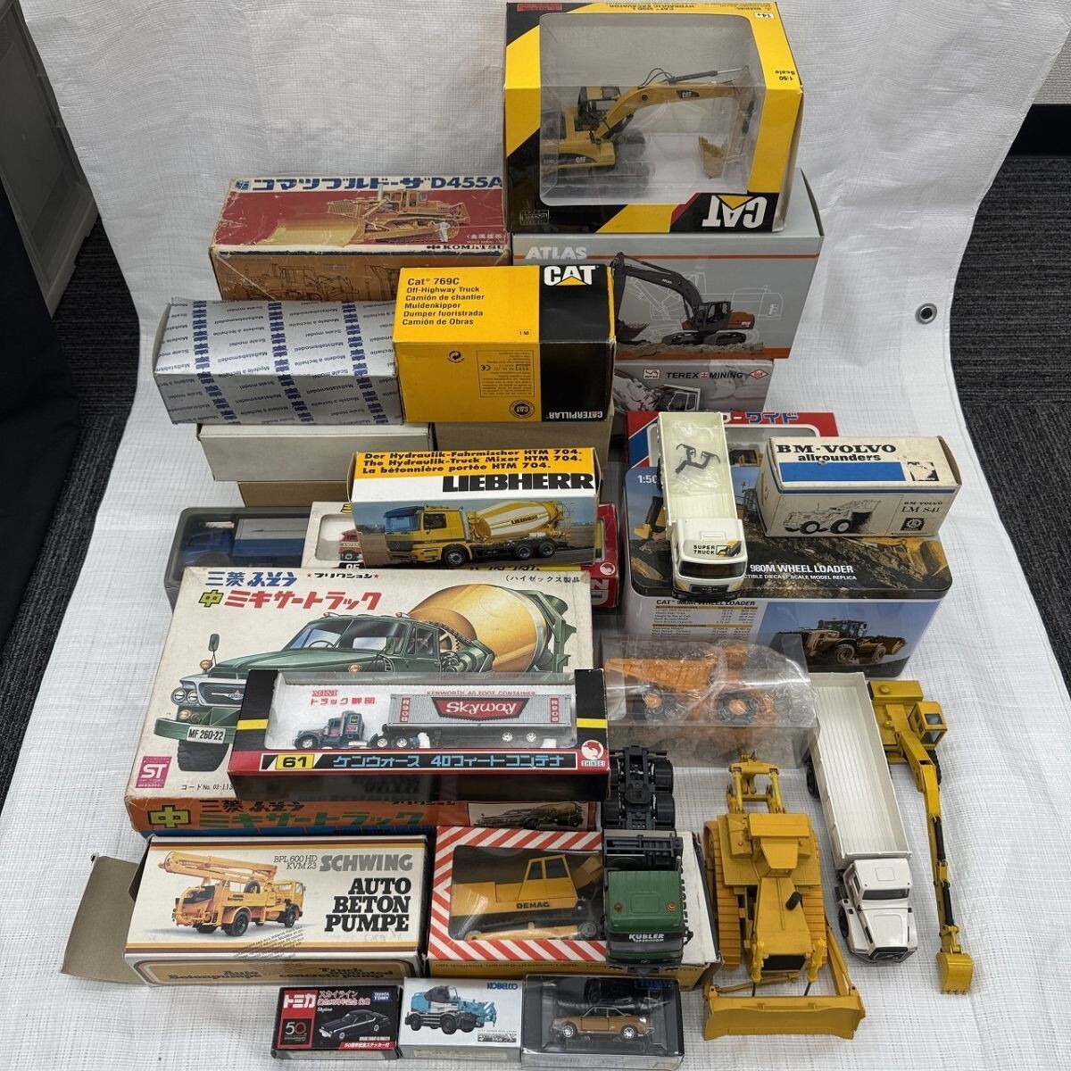 E472-G19-1100 ミキサートラック ブルドーザ ホイールローダ コンテナ etc 作業車 ミニカー 28点セット まとめて IE
