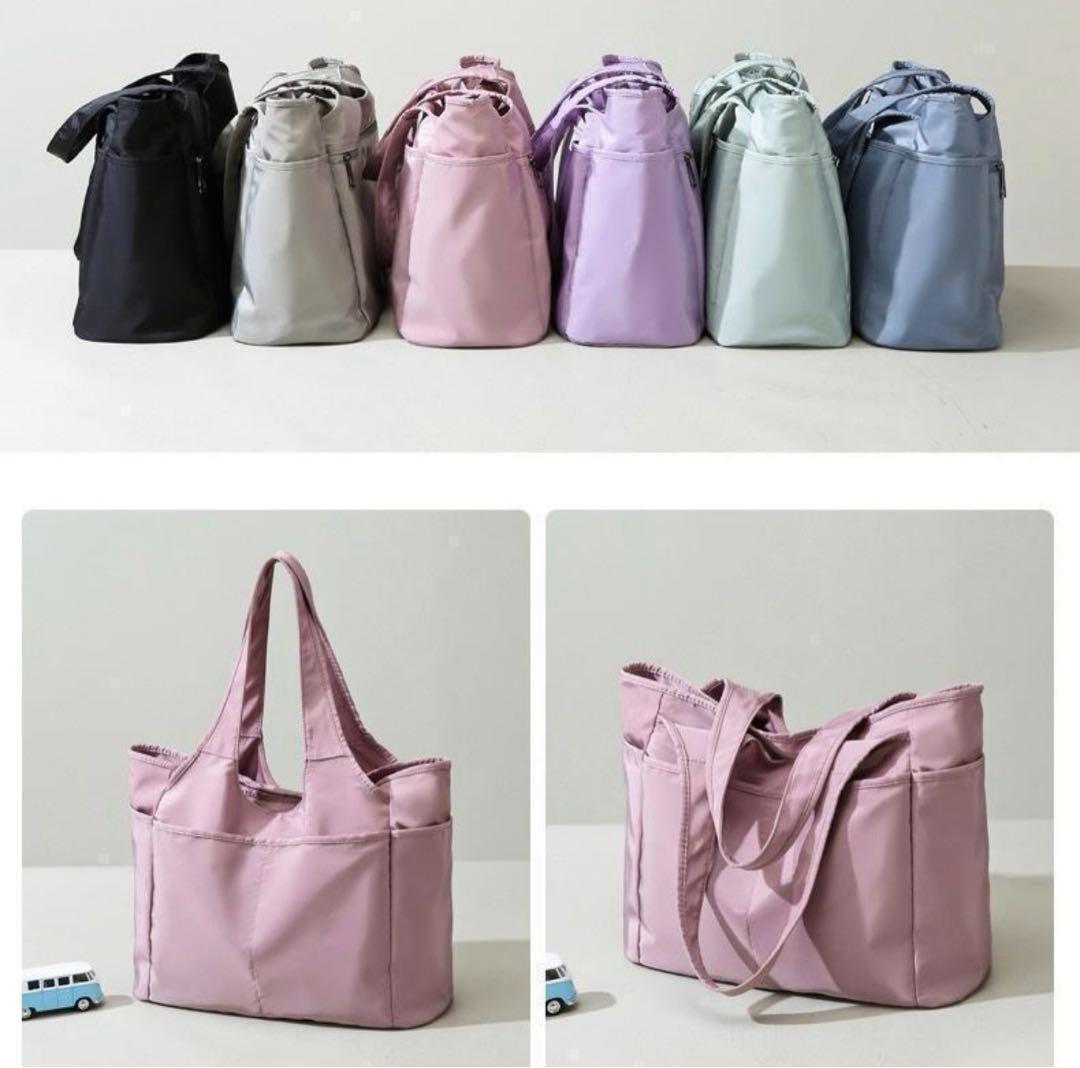 多機能でスタイリッシュなトートバッグ、紫と黒の2色展開。