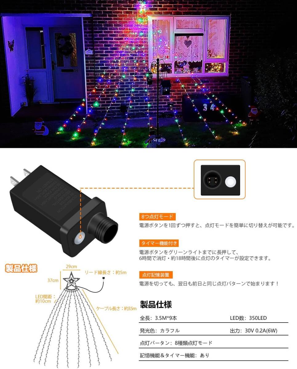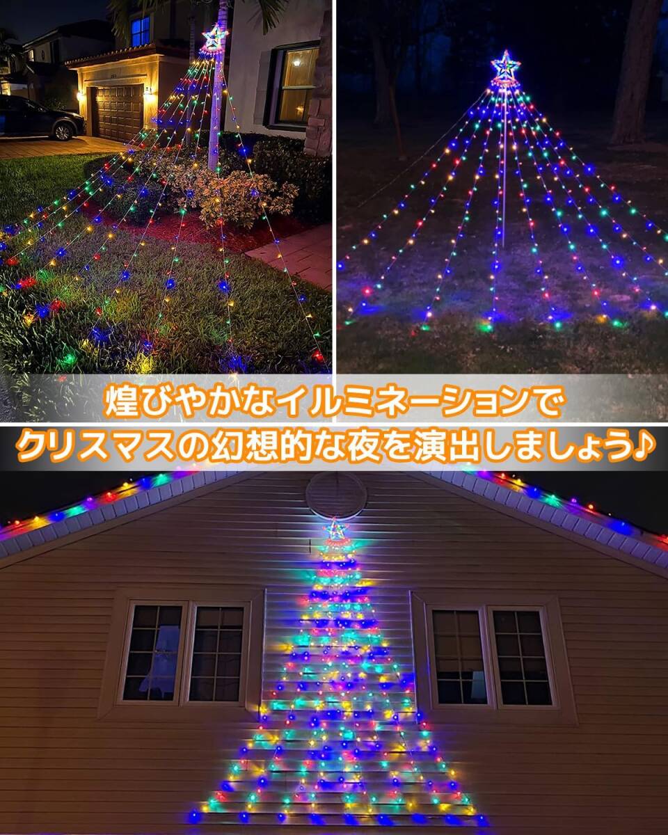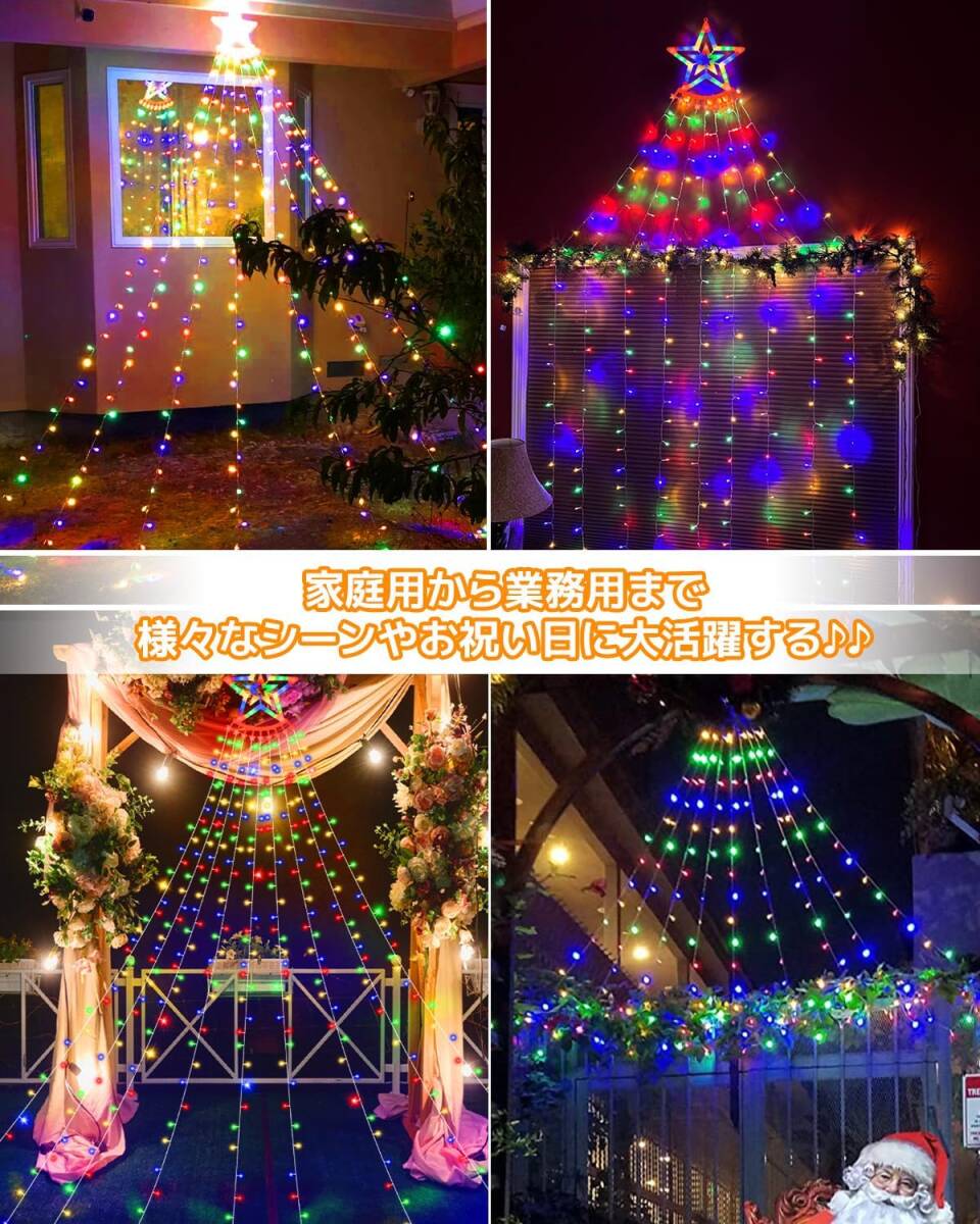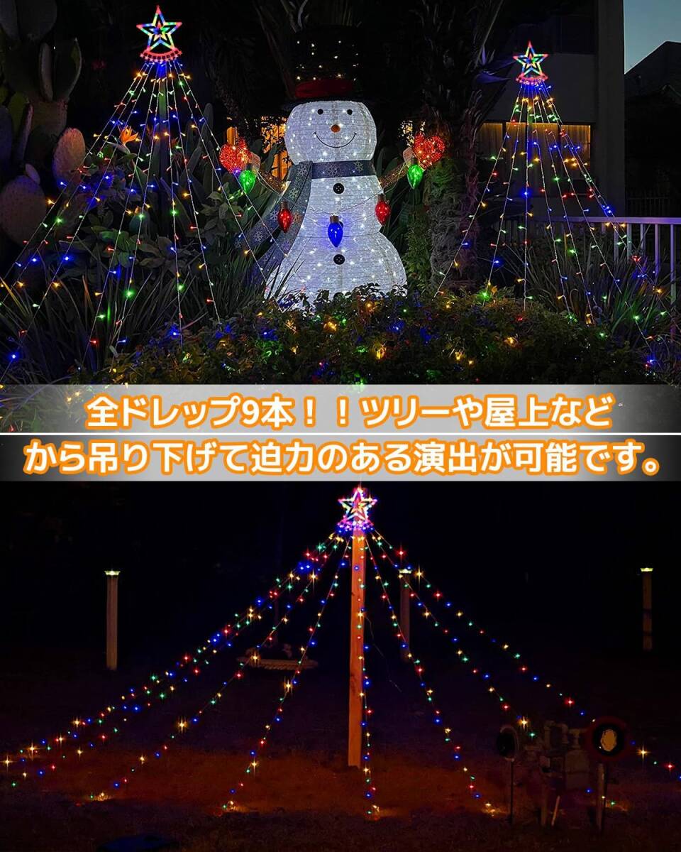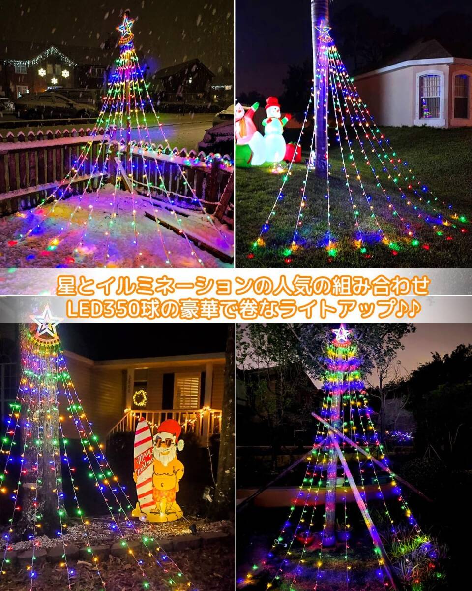 9本×3.5M 350球 LED イルミネーションライト 屋外 防水 LEDストリングライト クリスマス飾りライト ドレープ 星モチーフ