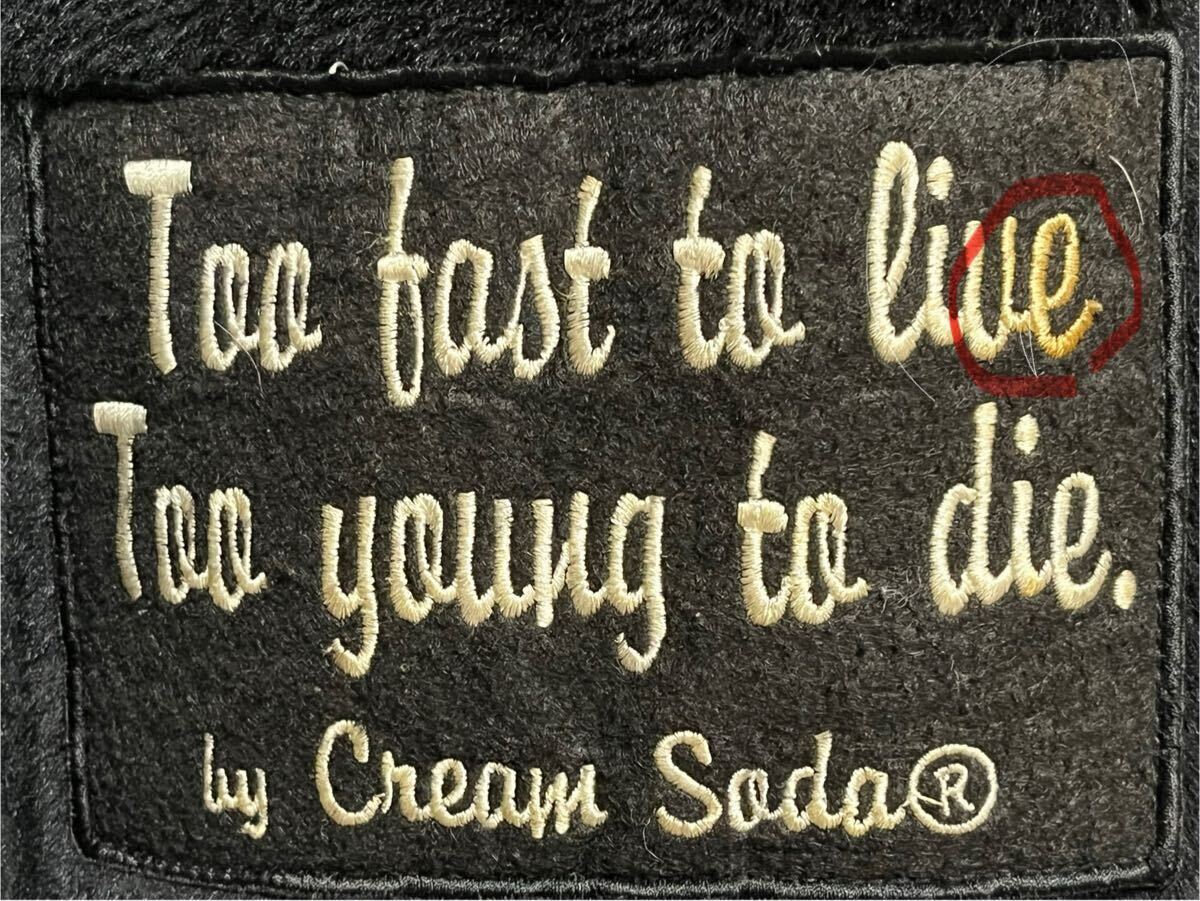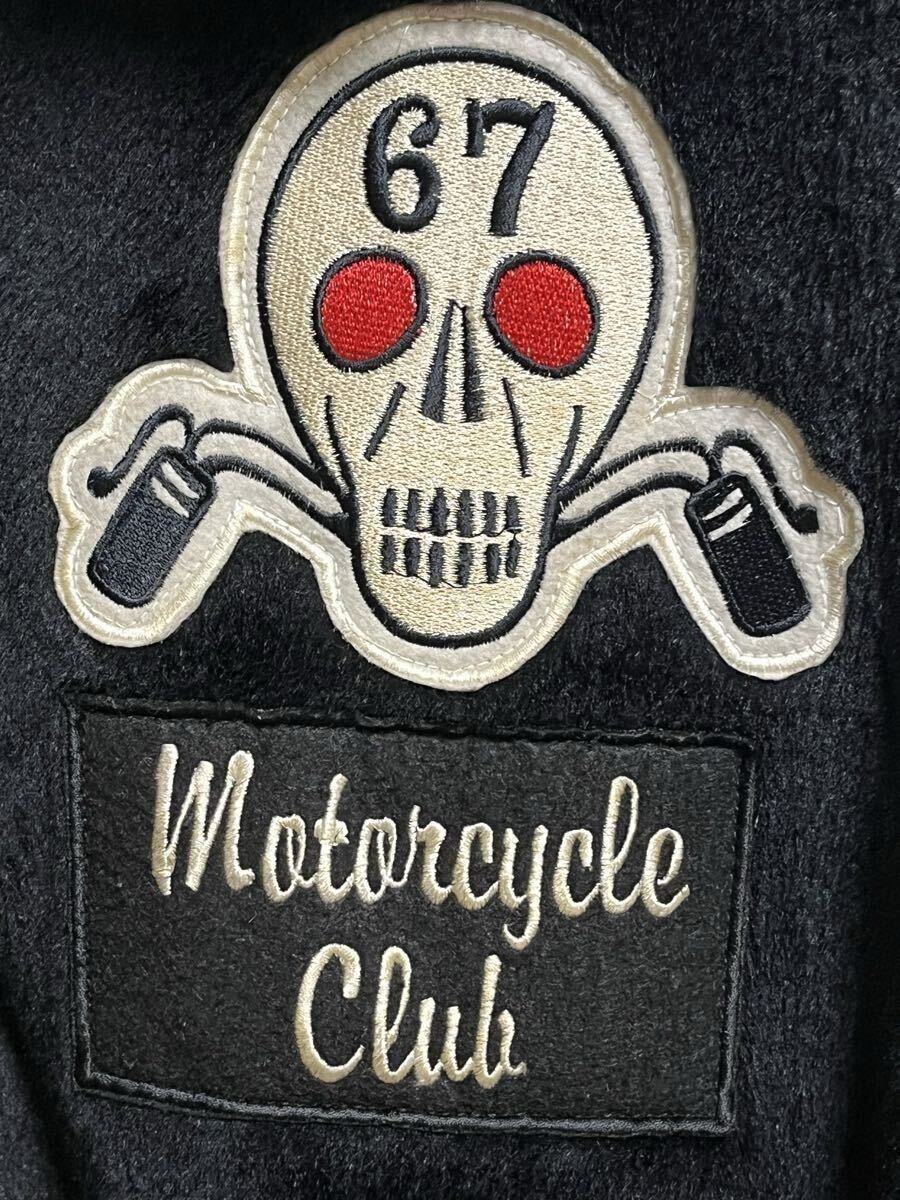 ブランド名 CREAMSODA・表記サイズ L・肩幅 53cm・身幅 61cm・着丈 65cmです。フロントのワッペンの文字が少し変色しています。全体的にはキレイな状態です。