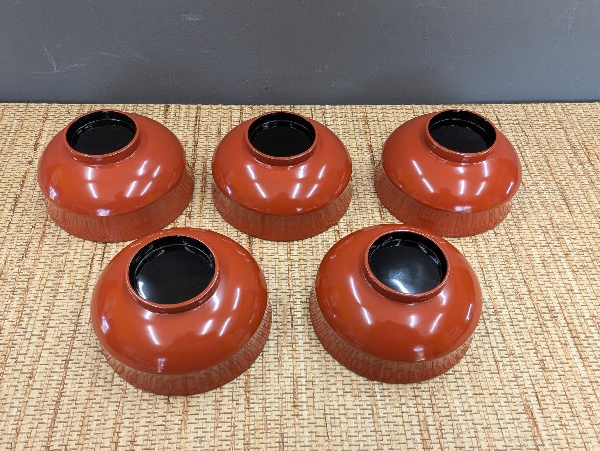 蔵出し 時代物 食器 漆器 いちょう ご飯椀 碗★5客