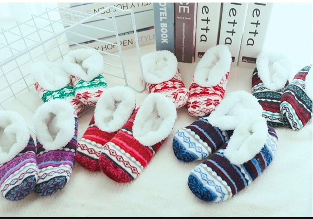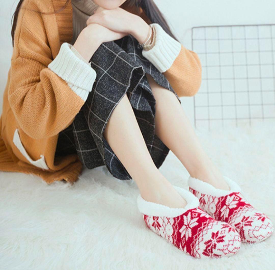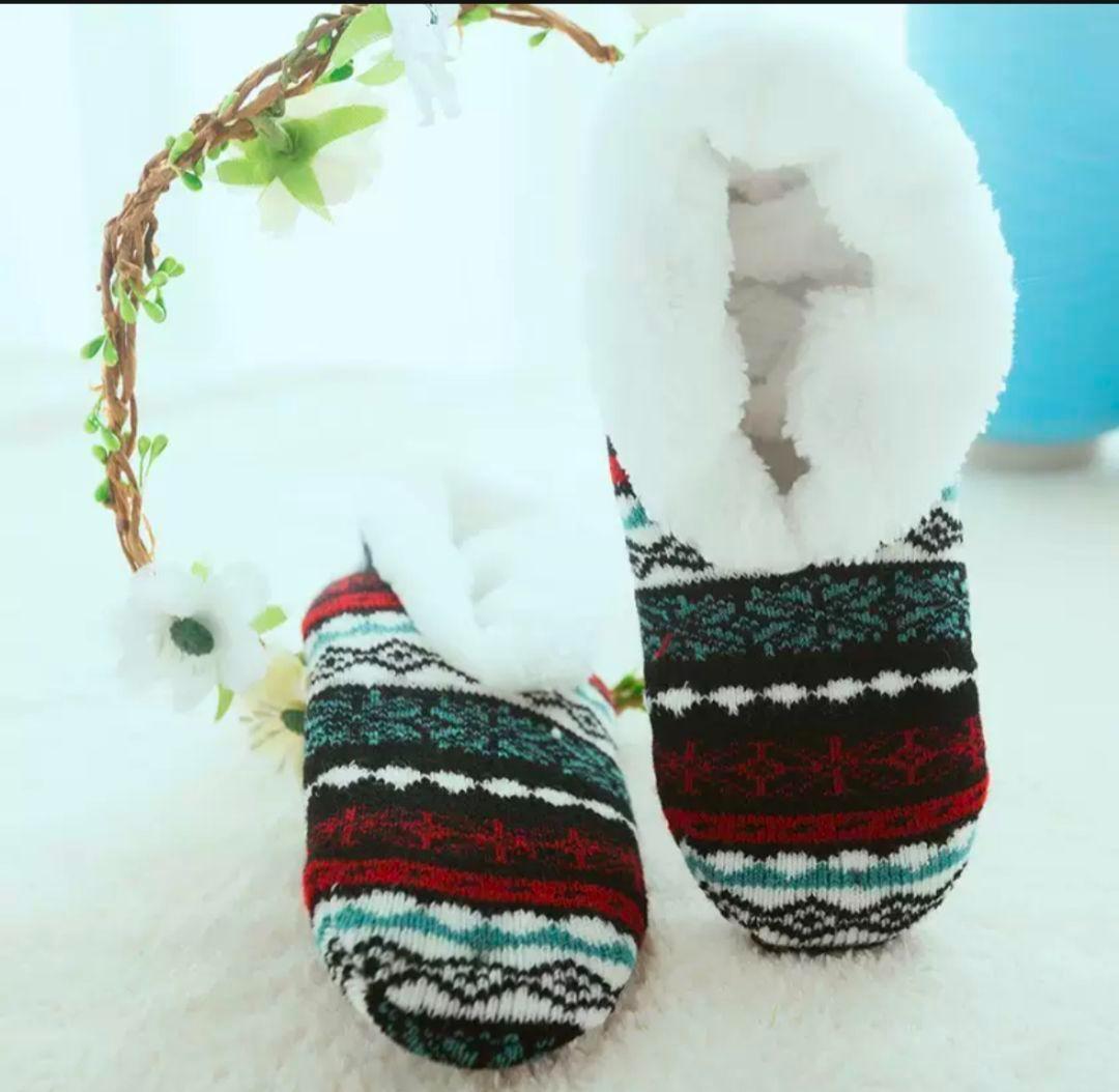◆寒い季節にぴったり!ふわふわボア付きの北欧風デザインルームシューズです。