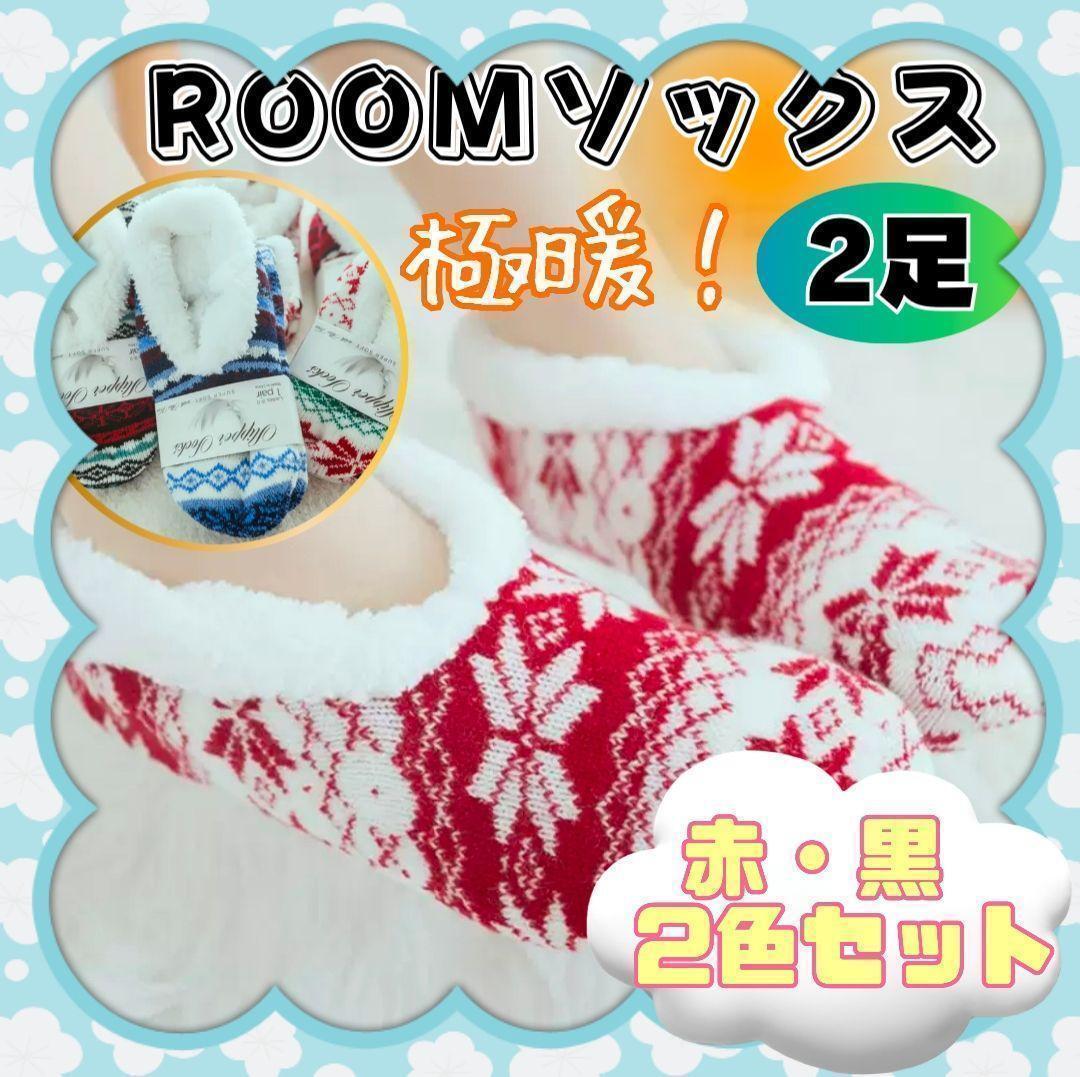 商品名:ルームソックス2 2足 赤+黒 ノルディック