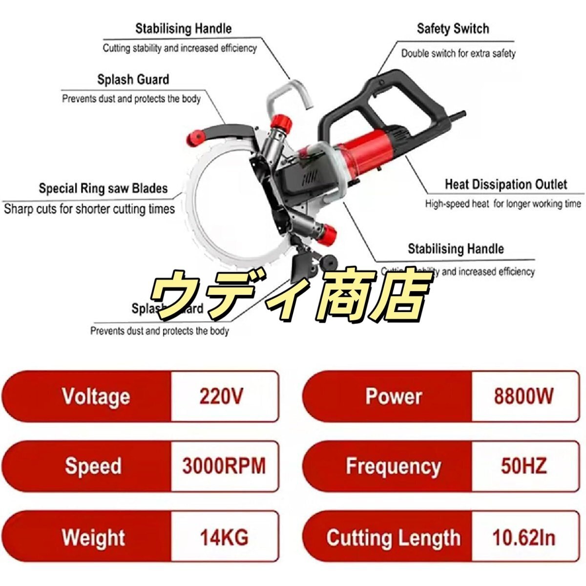パラメータ: 定格電圧: 220V、定格周波数: 50Hz、定格電力: 3000RPM、鋸刃直径: 37cm、最大切断深さ: 14KG。 効率的: コンクリートリングソー切断機は、最大 3000rpm の速度を持つ強力な 8800W/9500W ブラシレス純銅モーターを使用しており、高強度の連続作業でも機械の損傷を