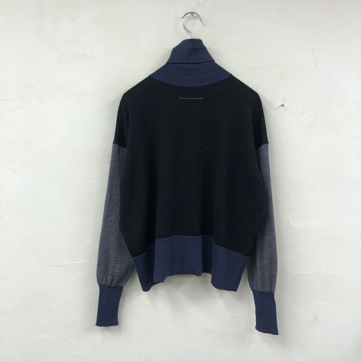 2O3363-K◆トルコ製 MM6 エムエム6 タートルネックニットトップス◆sizeS グレー クレイジー 薄手 ウール100% サイドスリット レディース