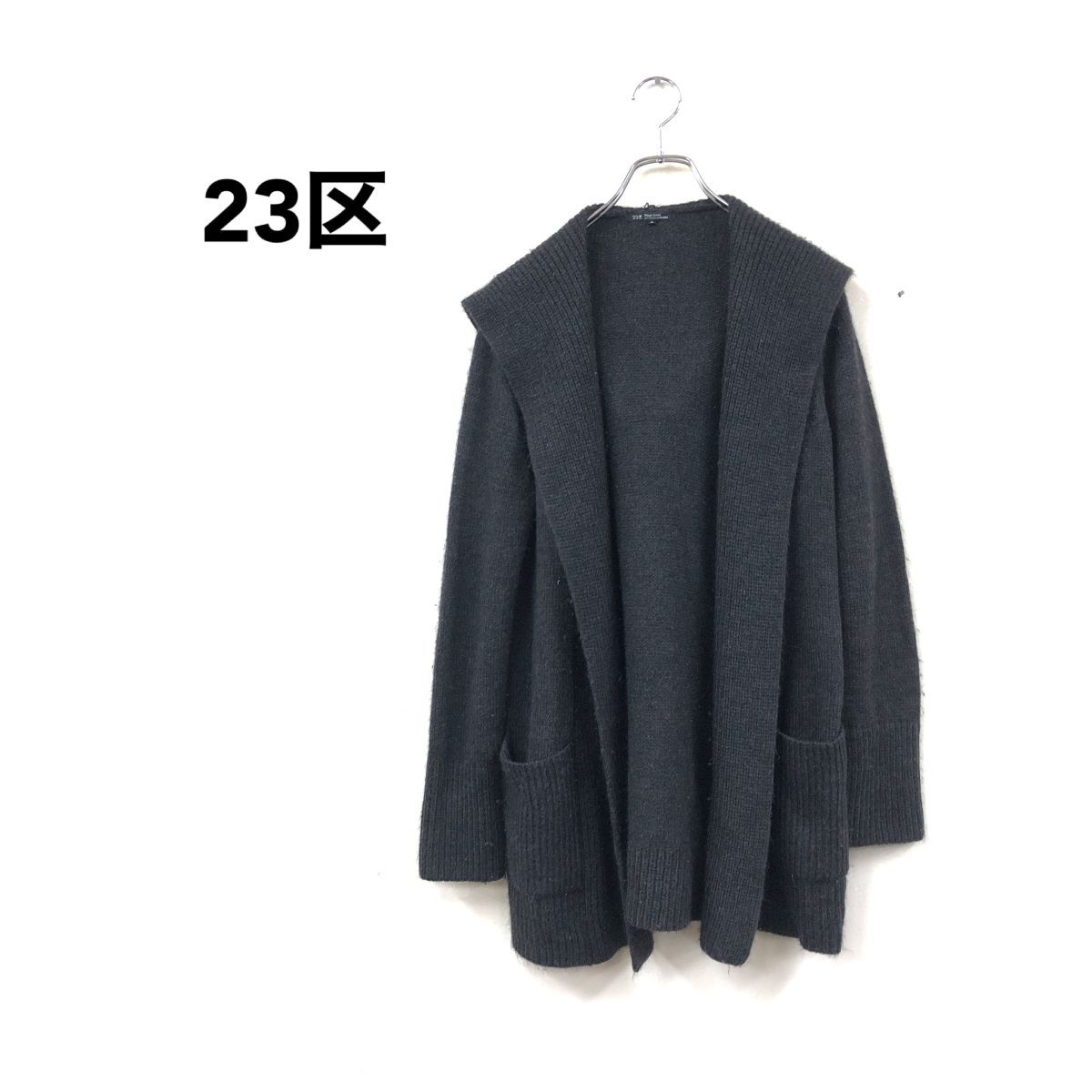 2N1095-Y◆23区 ニジュウサンク ボタンレスフードカーディガン ニット 前開き レディース カジュアル ◆size38 ブラック 羊毛 アルパカ