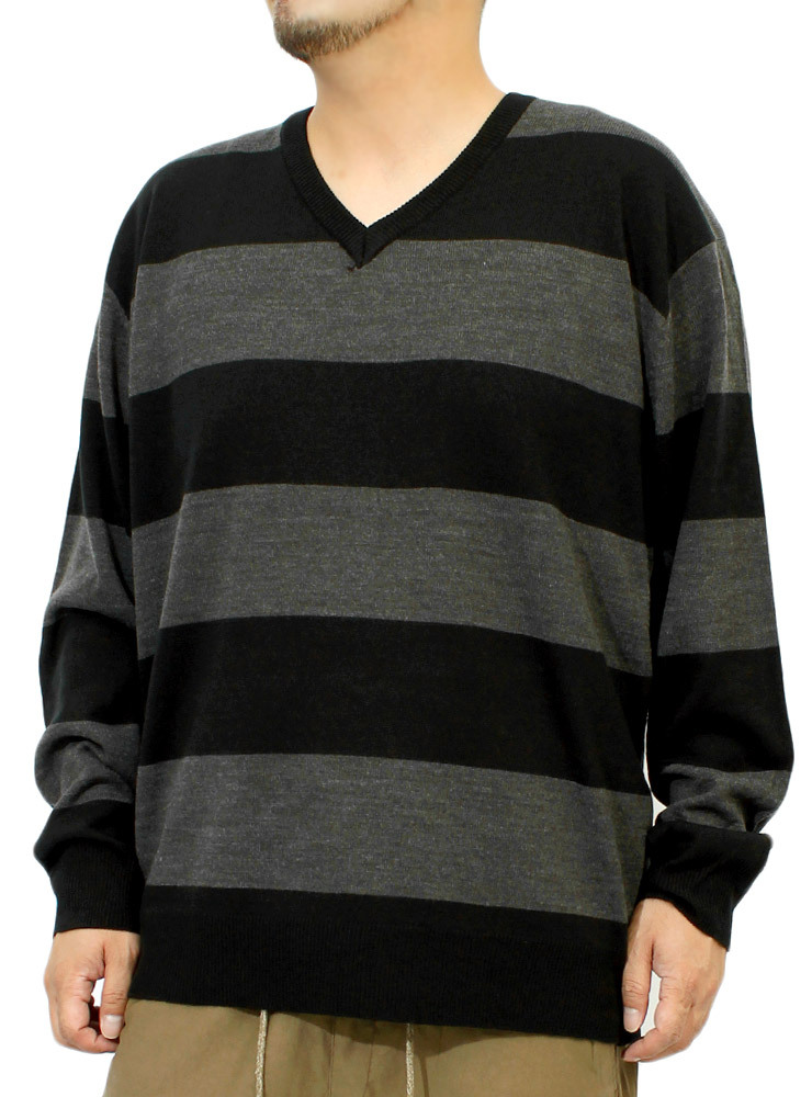 | 商品名 | 【新品】 3L ボーダー ニット メンズ 大きいサイズ Vネック カシミヤタッチ 無地 セーター |