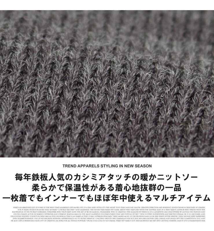 | 商品説明 | 柔らかな肌触りがやみつきなカシミアタッチVネックセーターが登場。 |