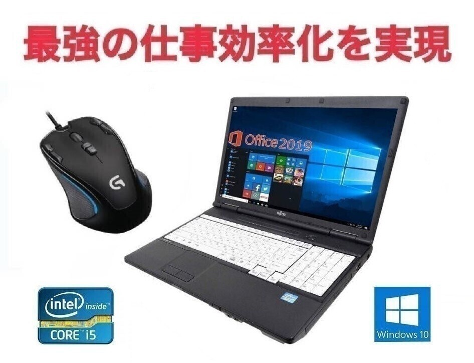 【サポート付き】A561 富士通 Windows10 PC Office2019 次世代Core i5 HDD:250GB メモリー:8GB & ゲーミングマウス ロジクール G300sセット