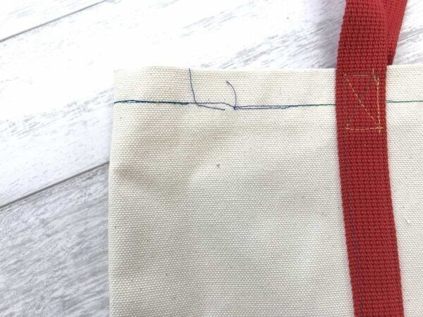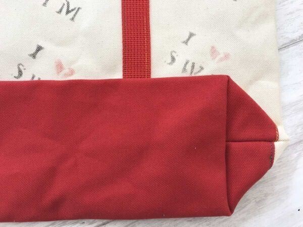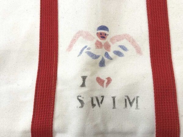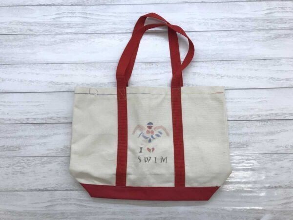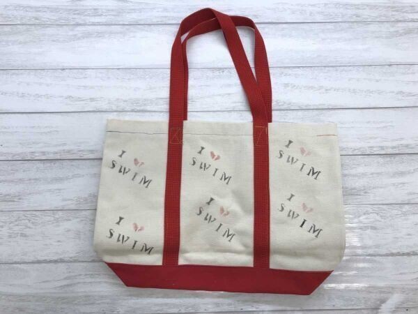 レトロ ユニーク おもしろ ISWIM 水泳 イラスト風 スタンプ バイカラー キャンバス トートバッグ 男女兼用 マチ付き 生成り 赤 です。