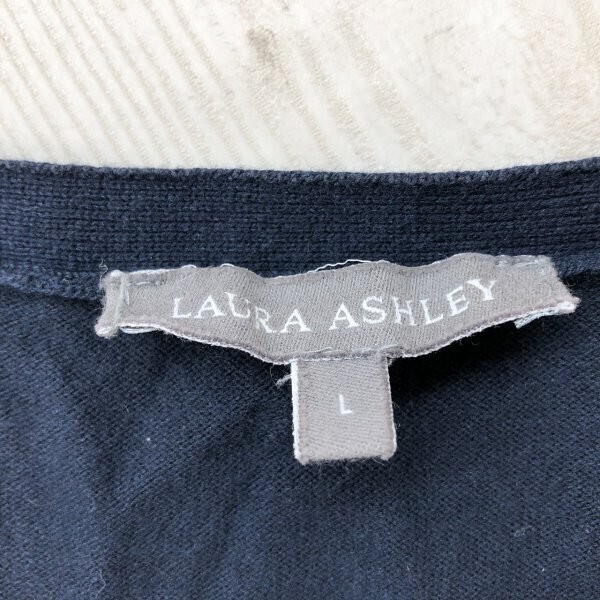Laura Ashley ローラアシュレイ レディース リボン付き Vネック カーディガン L 紺 です。