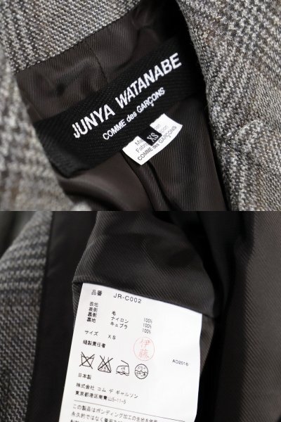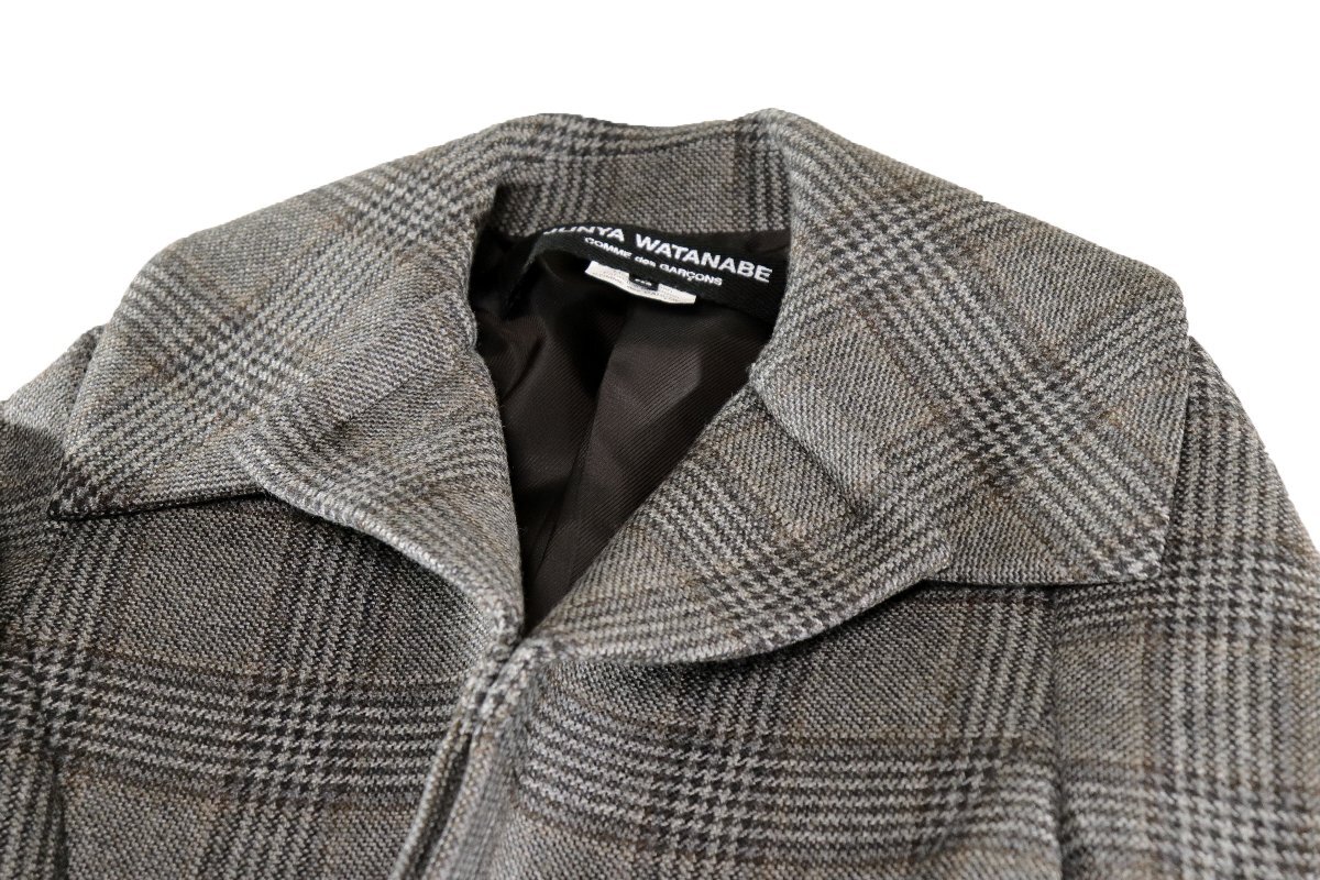 ★極美品★ジュンヤワタナベ/コムデギャルソン/ウールグレンチェックコート:XS/灰系xz926