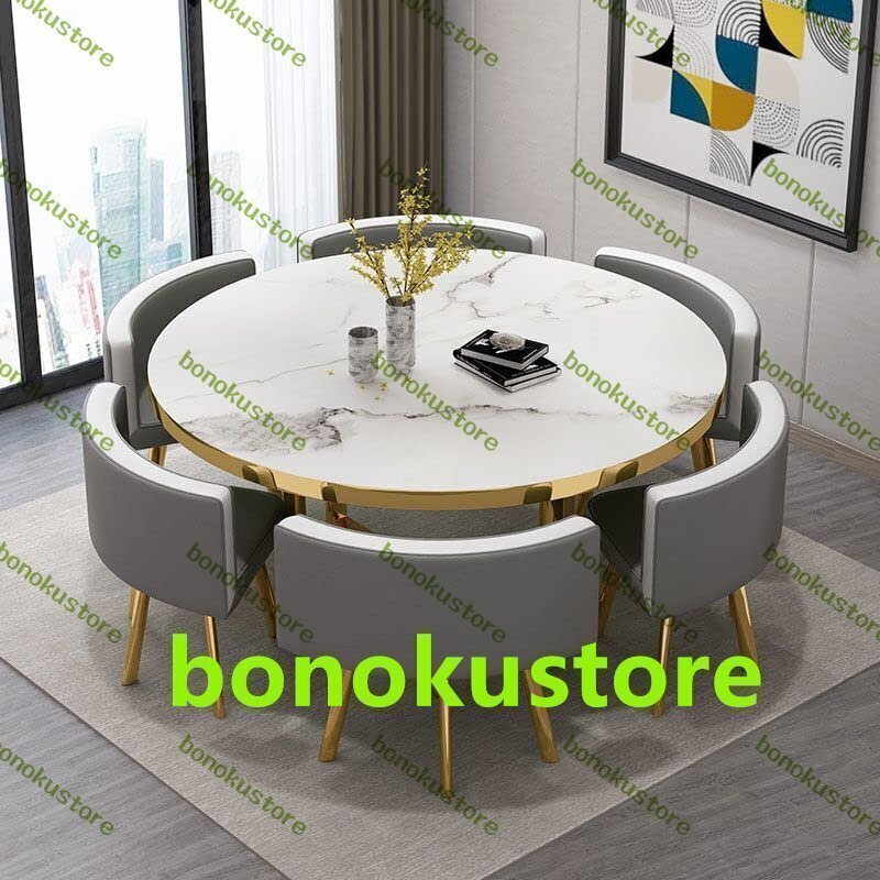 商品説明 ラージサイズ:ダイニングテーブルセット6人用、机の幅、厚さ、机の直径120cm、家族6人用。製品にはガラス板やアクセサリーが含まれていないことに注意してください。 耐久性の向上:テーブルと椅子のセットスタンドは、高温塗装の鉄工芸を採用しており、見栄えが良く