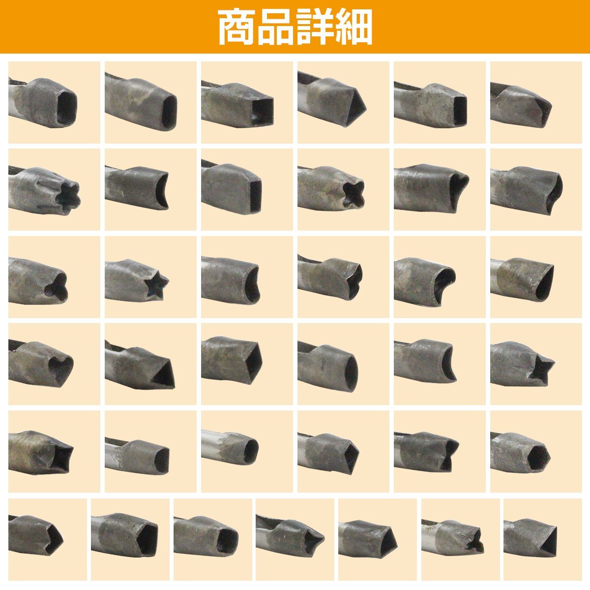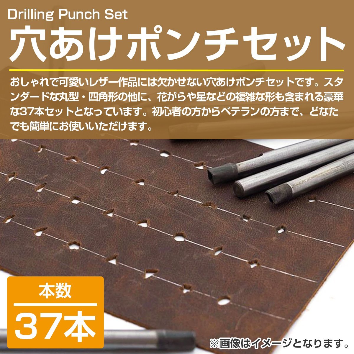 【新品即納】穴あけポンチセット 37本 レザークラフト シェイプパンチ 工具 ハトメ抜き 革細工 穴あけパンチ 丸/四角/花/星 DIY 工作 手芸