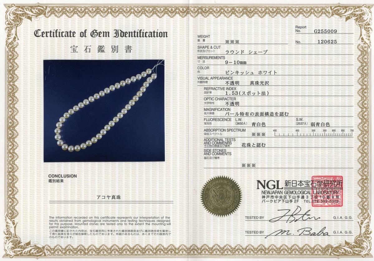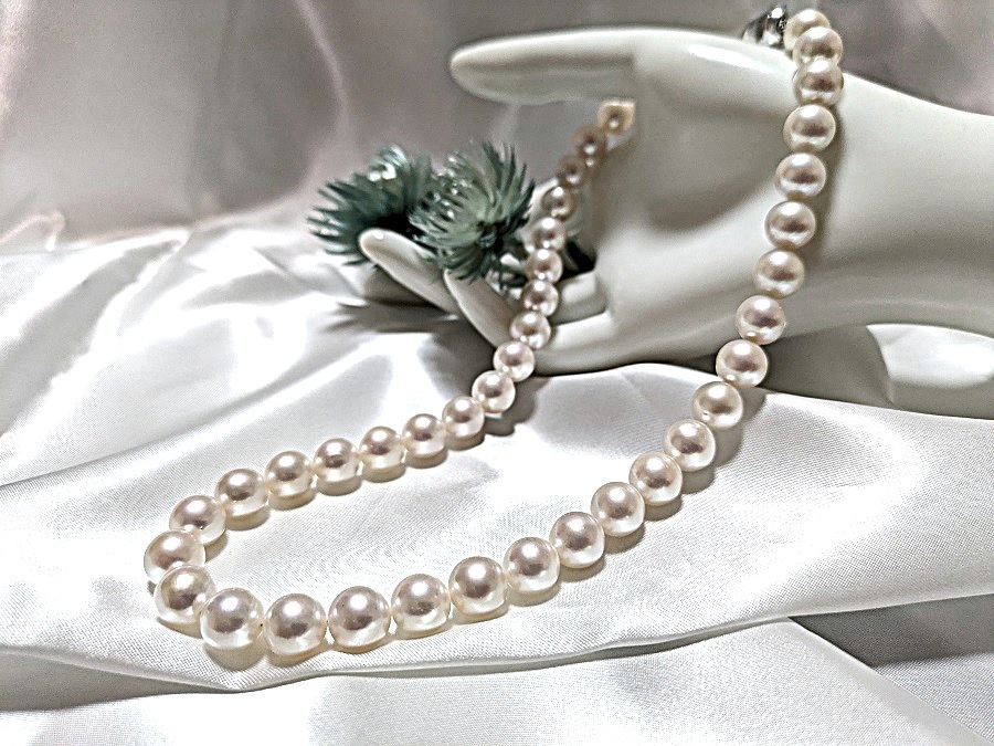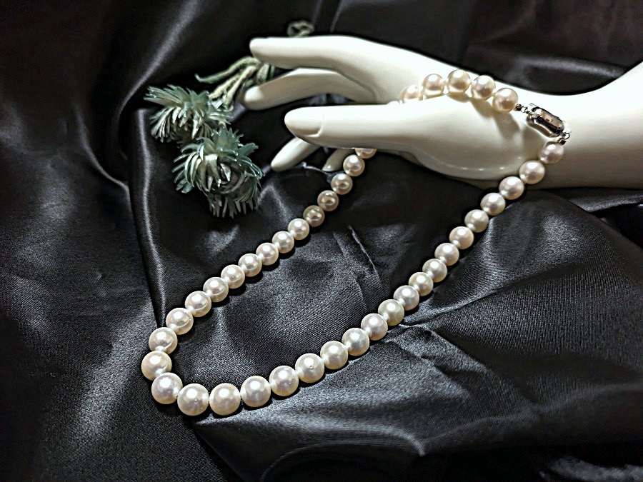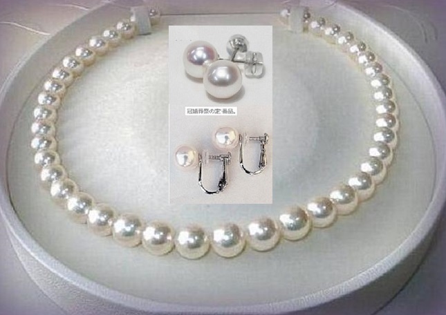 | 真珠の街神戸で製造卸を30年 通販は大阪支店にて卸価格で販売致しております。 ★お買い得限定セール 照り巻きはオーロラ花珠に匹敵! 瑕は無瑕かたほんの小瑕程度、 形はラウンド 【真珠の種類】 あこやパール 『参考価格』販売店により異なります 【真珠のサイズ】 10mm~9mm前後 クラスプはシルバーのプッシュ式です。変色防止処理 きちんと装着して出来立てのお品を発送致します。 【色】 ホワイトピンク系 真珠の評価 *** 巻き・・・ 最高に良い 1 光沢・・・ 最高に良い 1 瑕 ・・・ 無瑕~小瑕有 装着時余り目立ちません 1 形 ・・・ 丸 1 【全長】 約 44cm 前後 クラスプも含む 【別注品】 9.5mmUPのSVネジバネ式イヤリングを33000円、 PTピアスを37000円でご希望の方のみ承ります。 花珠桐箱ケース 3500円 お手入れクロス付 専用ブックケース 1700円で承ります。 製造卸の為同等の在庫は多数ございますので画像はその中の見本です。予めご了承ください | |||
