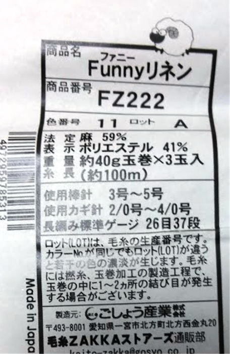 毛糸ZAKKAストアーズ Funnyリネン 40g×16個+使いかけ1個 麻系