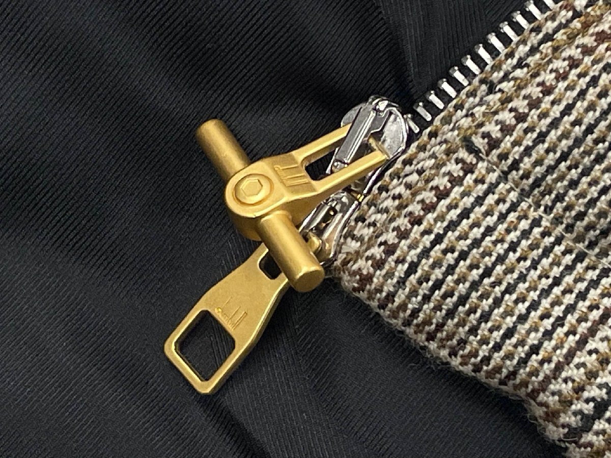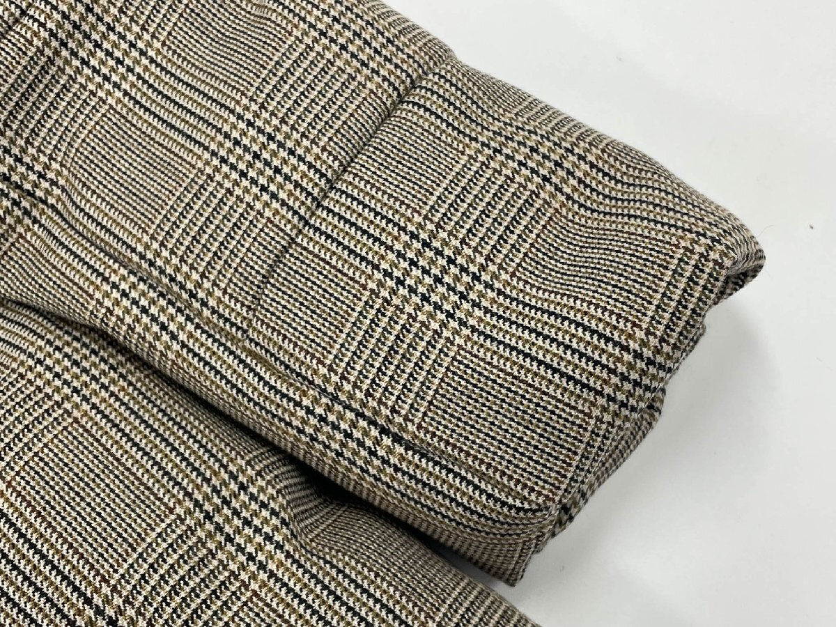 ・全体に、ブラウンやカーキ系の色糸が織り混ざったグレンチェック柄がデザインされています。