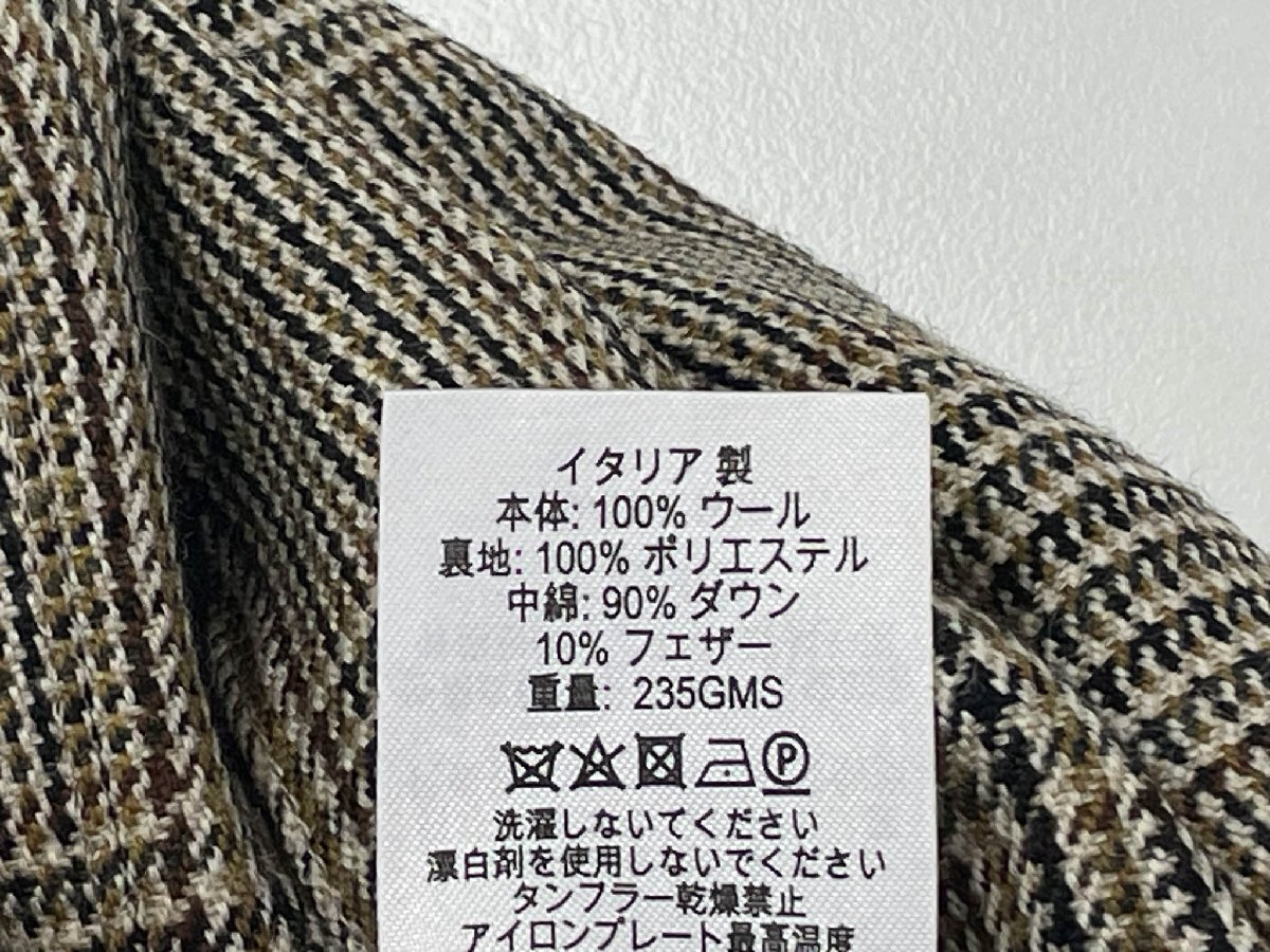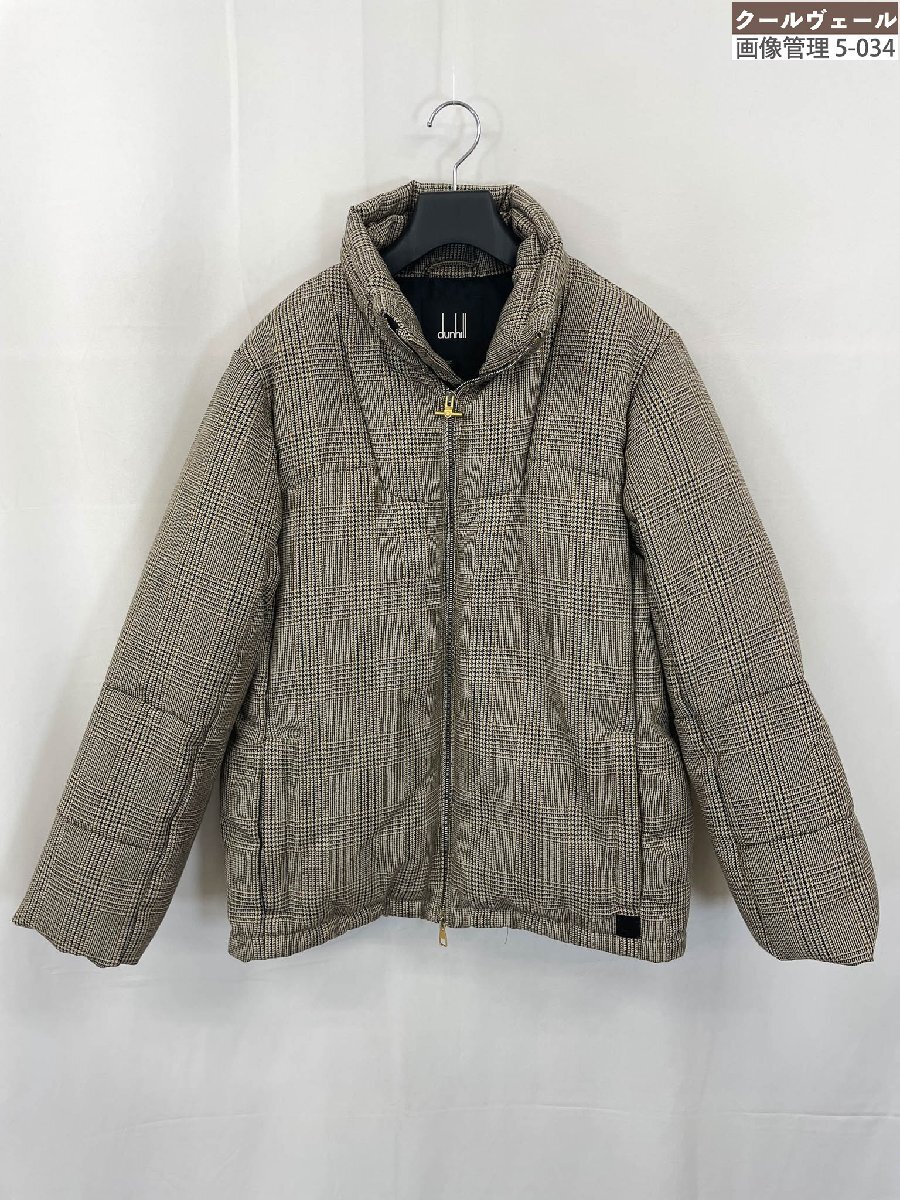 超美品【ダンヒル dunhill】リシュモンジャパン スタンドカラー グレンチェック ダウンジャケット(メンズ)M カーキベージュ 伊製◇17MB5136