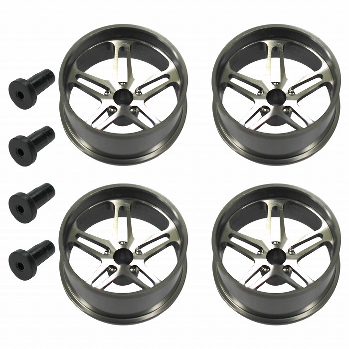 【送料220円】ミニ四駆用 4個セット アルミホイール ブラック デュアル 5スポーク 5穴 ローハイトタイヤ ホイル ホイール グレー ガンメタ