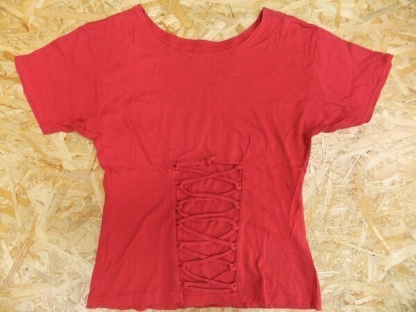 ASCOT TOKYO STYLE アスコット 東京スタイル レディース バックレースアップ 綿100% コットン 半袖Tシャツ カットソー L 赤