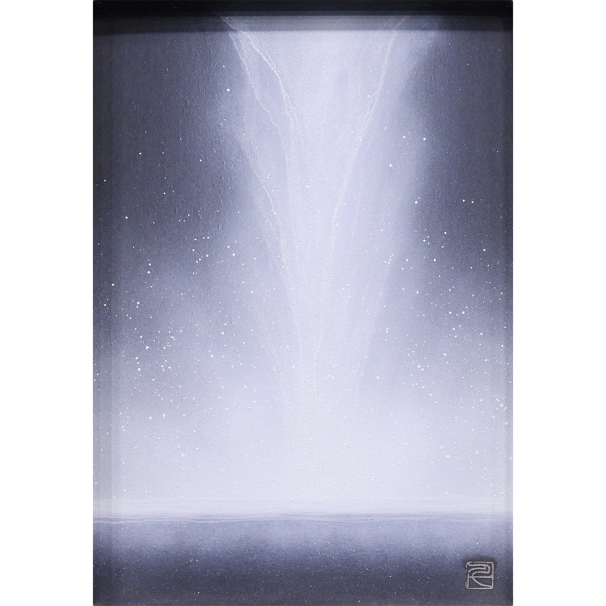 | 静かな白の世界に、ただ滝だけが流れている。 余分なものを一切描かず、「水の落ちる瞬間」だけを捉えたこの作品は、見ているうちに自分の中のざわつきが静かになっていくような不思議な力を持っている。 代表作であるウォーターフォールは、自然をただ写すのではなく、水が落ちる音、空気のひんやりとした感覚までをも絵に閉じ込めるように描く。 白い絵なのに、深い奥行きを感じるのは、紙本に絵具を滲ませ、重ね、乾かすという日本画特有の技法が生み出す“にじみ”の美しさによるものだ。 この小さな作品の中に、千住が何年も描き続けてきた滝の世界が凝縮されている。 美術業界が次の文化勲章受章者として最も期待している作家でもある。