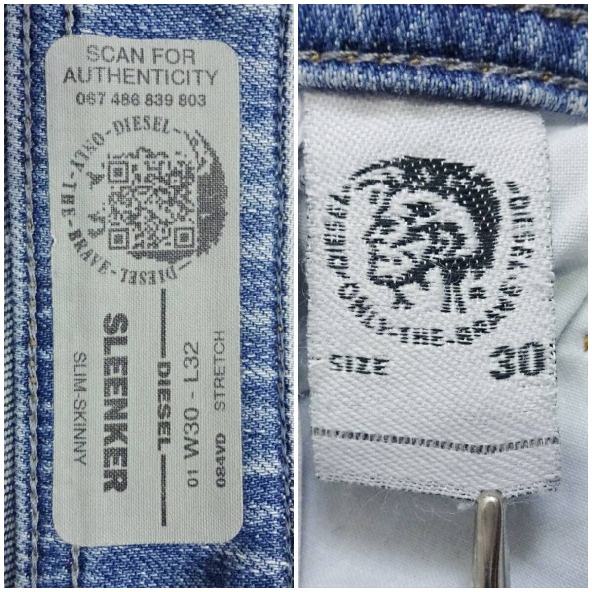 即決★ 送料無★ ディーゼル SLEENKER W82cm スリムスキニーデニム 強ストレッチ 明青 W30 DIESEL J427